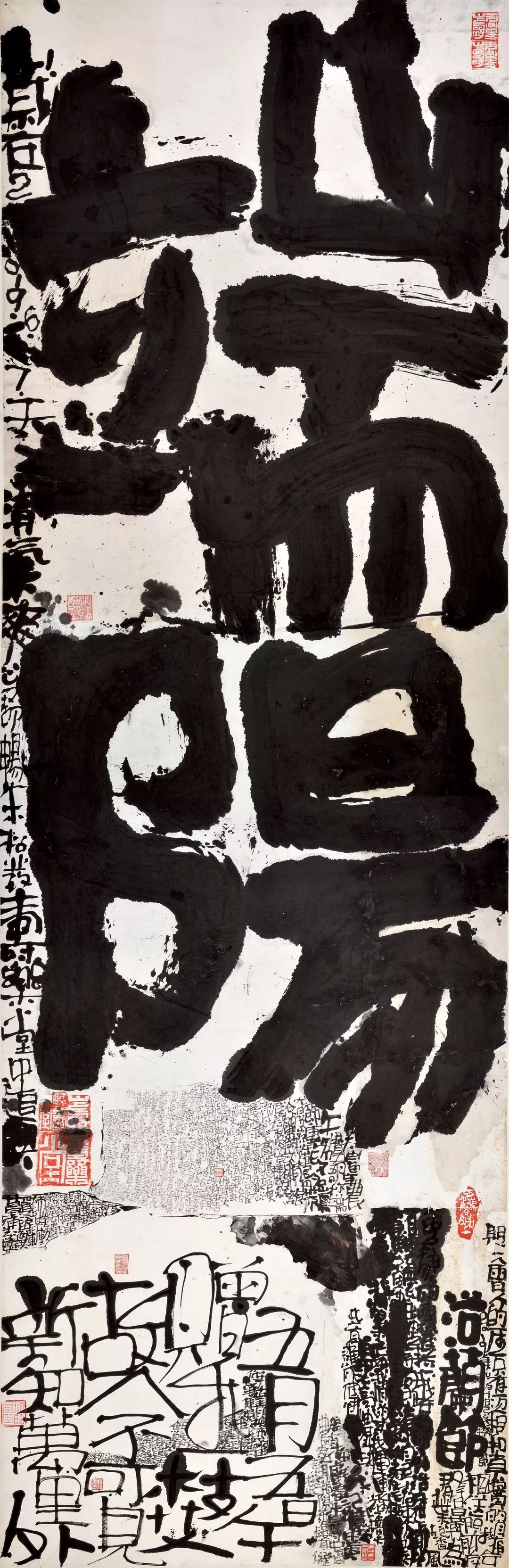 杨先生从高古入手,其书法篆刻从秦篆、汉简、魏碑中汲取养分,早年书法及篆刻风格给人以“粗、野、狂、怪”之感,近十多年间,又以书入画,进行水墨的创作,将高古元素和气韵溶入于水墨画的创作中去。看到近期创作的书法作品中用笔表现更赋画的意韵,水墨画中更充斥着书写的概括张力,将书法和所绘的物象相互渗溶于作品中,展示了他对笔墨力道和形式语言的超强驾驭能力。