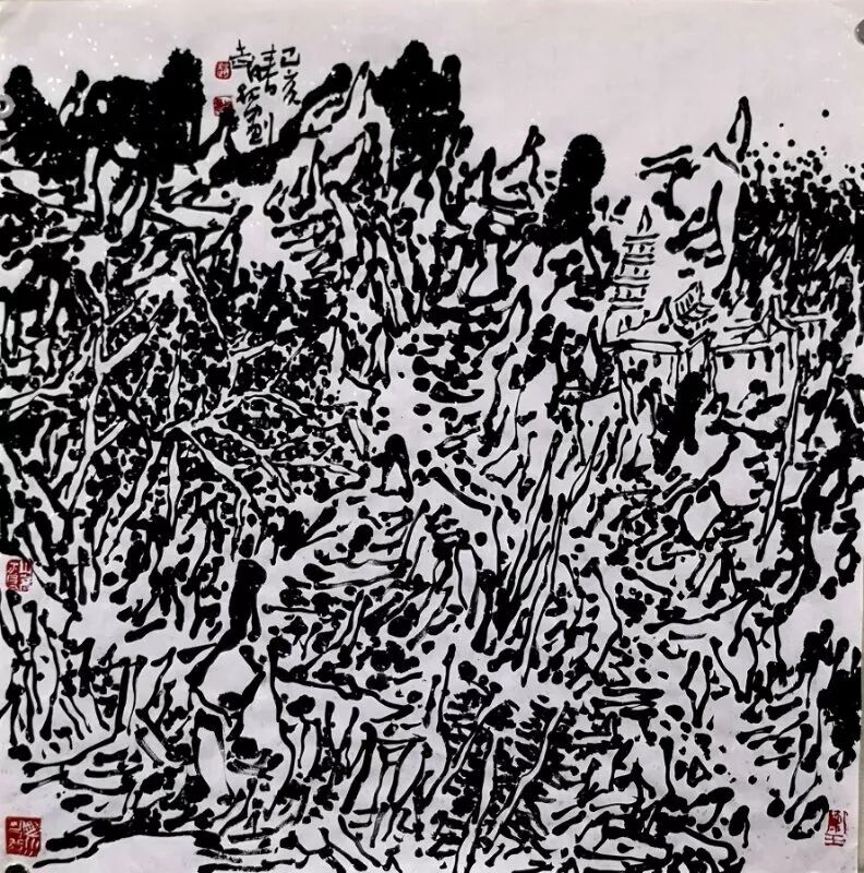 三、 除了在笔墨范式方面以黄宾虹为师,从而确立了自己的语言体系和笔墨风格之外,赵规划的另一个成功之处是表现在图式构成方面。