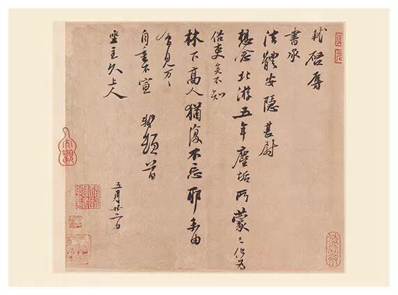 第二次重要会晤约在20年后,苏轼64岁,米芾50岁。当时饱经患难的苏轼从岭外回归来见米芾,有人请苏轼题词,苏轼说:“有元章在。”米芾谦虚到:“某尝北面端明,某不敢。”这固然是文人之间的谦辞,随后苏轼言:“今则青出于蓝矣。”米芾则徐徐答曰:“端明真知我者也”。这时的米芾表现出了极强的自负心理,而苏轼始终是谦虚恬淡的。