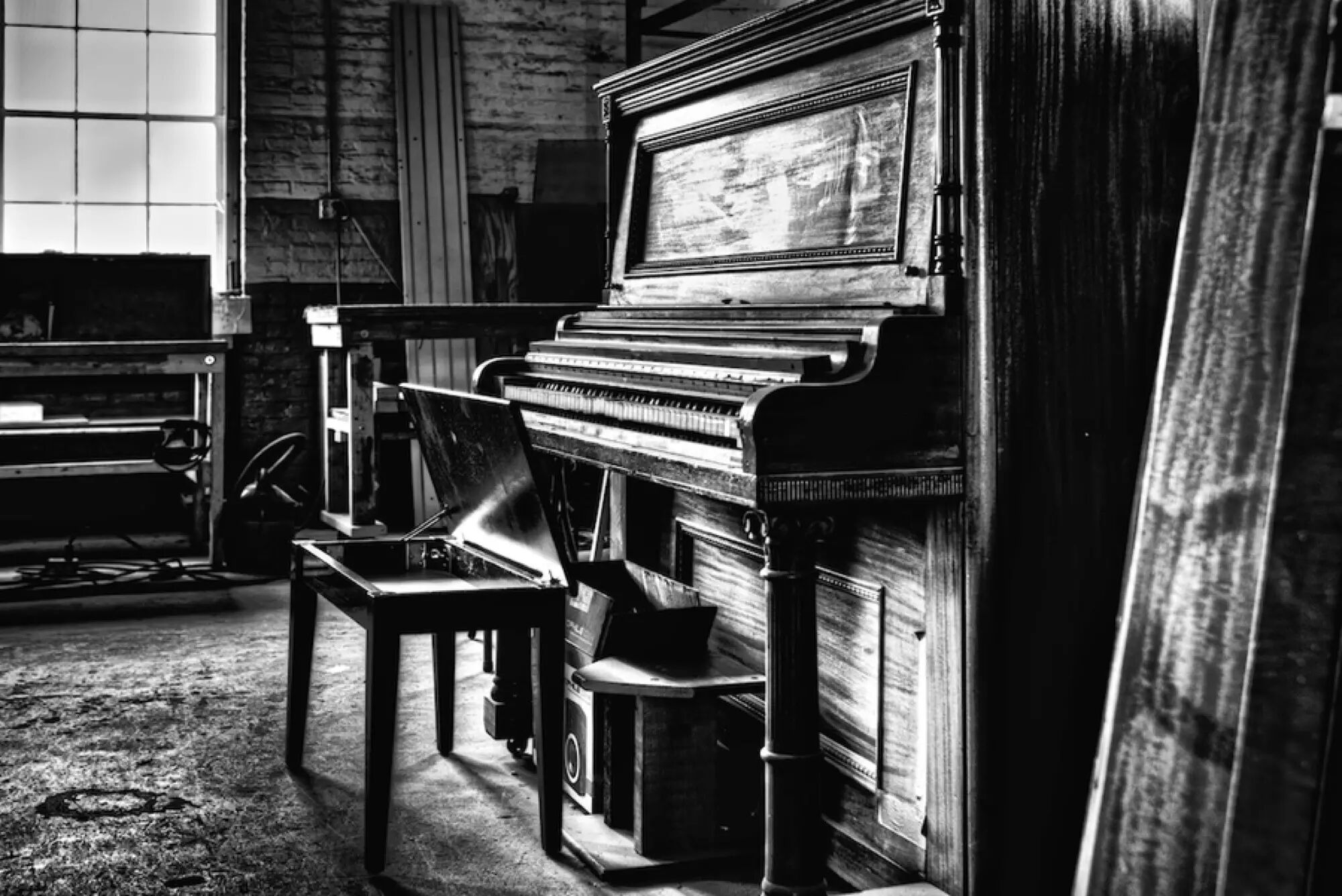 不久,在淮海路国泰电影院对过一家古董店里,我看见了壮观的景象:大大小小通体锃亮的钢琴堆满店堂,不是那么摆开平放,是上层的钢琴脚戳在下层的琴面上,一架摞一架,有三角大钢琴琴盖卸开,沿墙竖靠的,有琴囊里钢丝钢条给掀得翻翘支棱的,更有琴壁琴盖上被红卫兵用油漆用刀划下标语口号,店铺职员正洗刷收拾的,只见黑压压层层叠叠挤挤挨挨的钢琴阵地仅留得侧身走过的缝隙,像是堆满机床的大车间,店铺给堵得一片昏暗,白天开电灯。我在其间走过来,看过去,时年十三岁——我连口琴也不会吹。