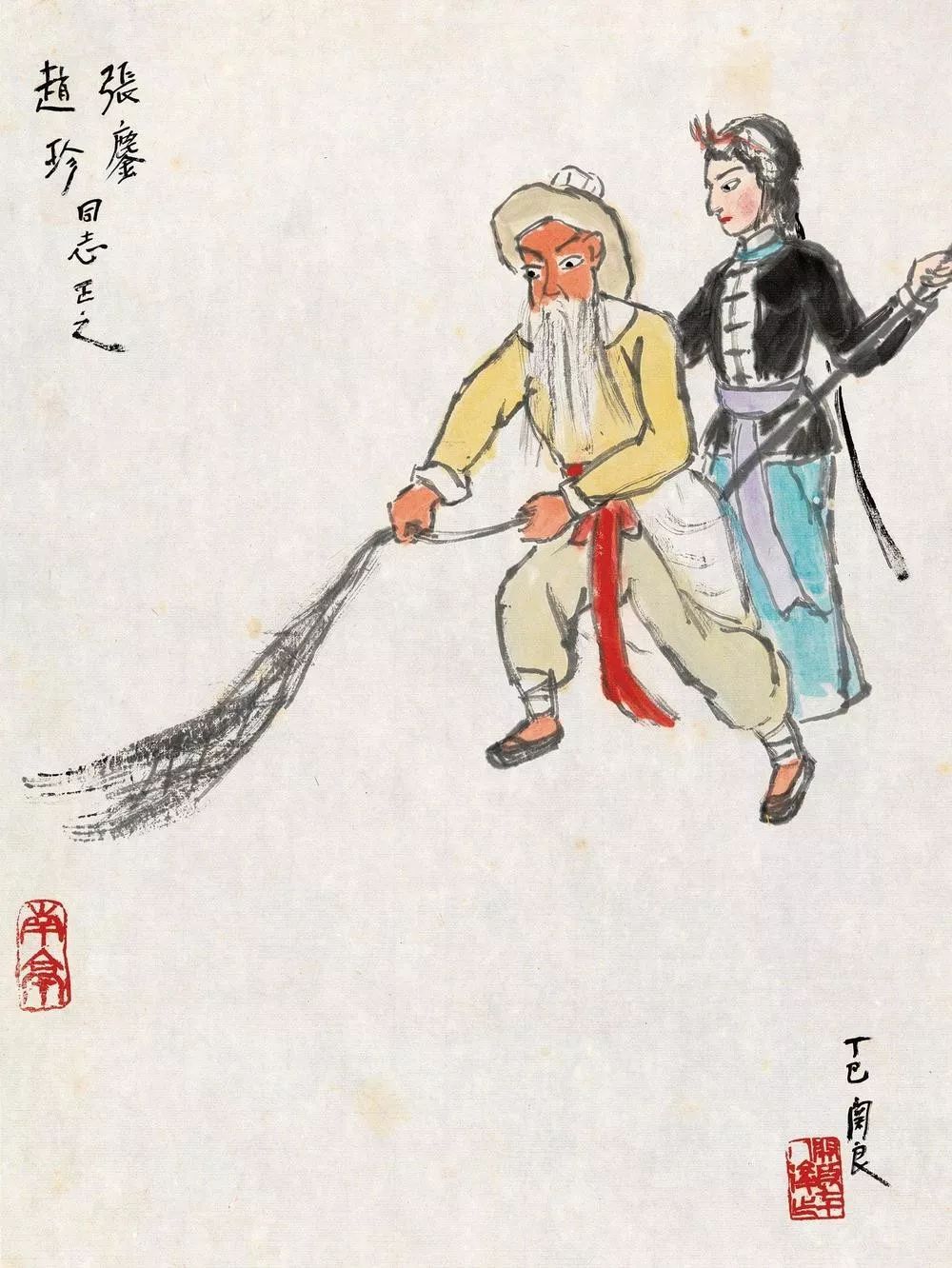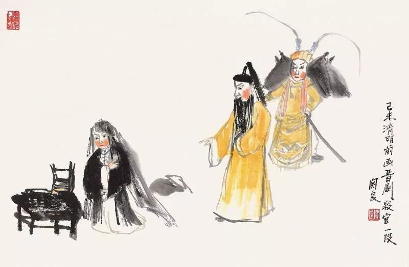 他笔下的人物,在脱净了市井油滑的同时,赋予了清爽素朴和深沉健朴,他是借中国戏曲人物之躯,来表现中国笔墨的博大精深和中国笔墨的无穷趣味。