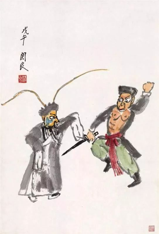 齐白石也爱听戏,见到关良的戏曲人物更是喜爱,他称关良的画是纸上活物,是创新,自创一派——关良派。