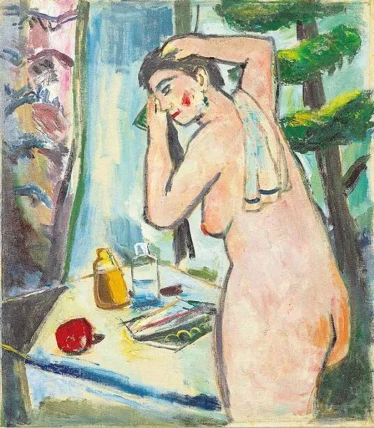 关良《浴后》,油彩、木板,82.2x72.2cm,1963