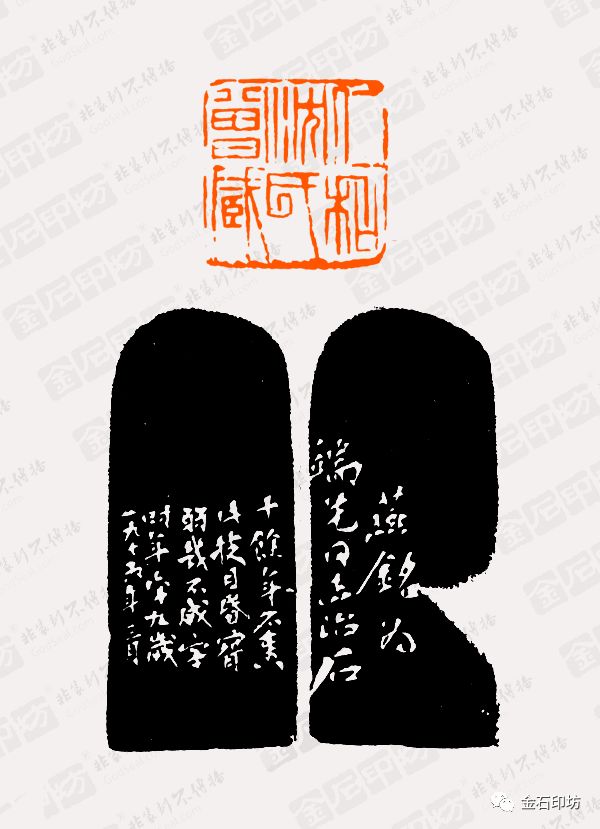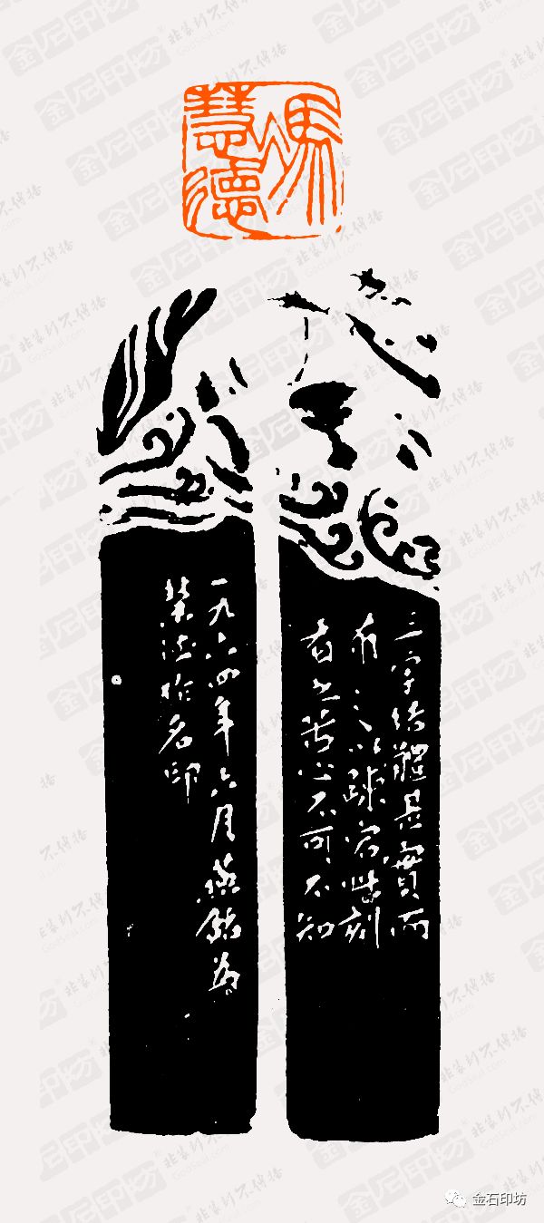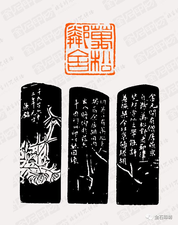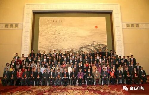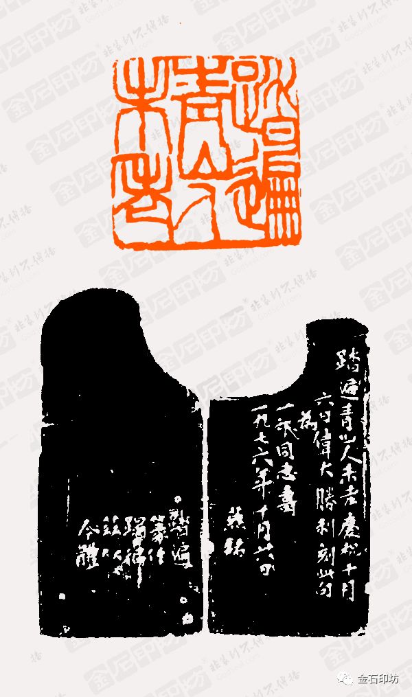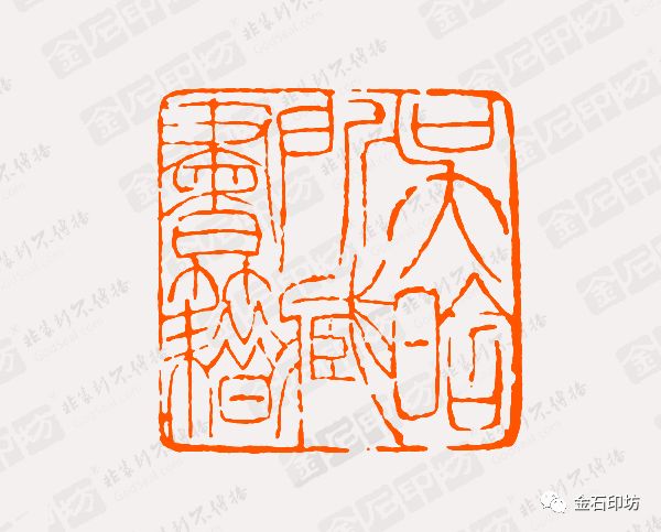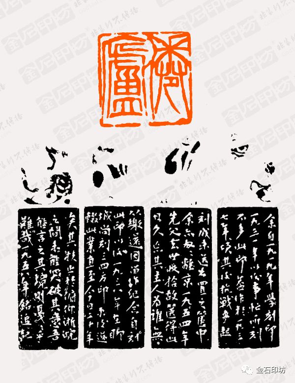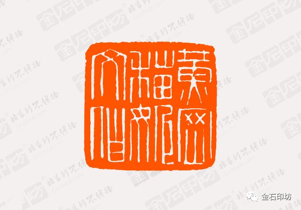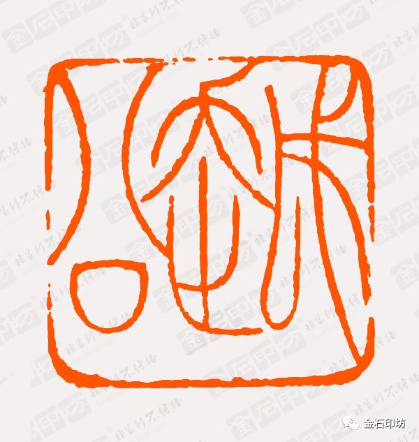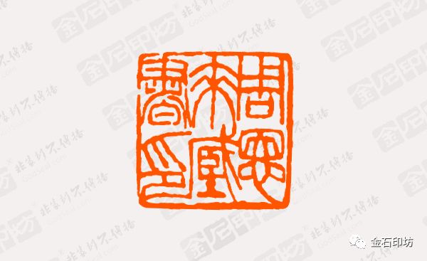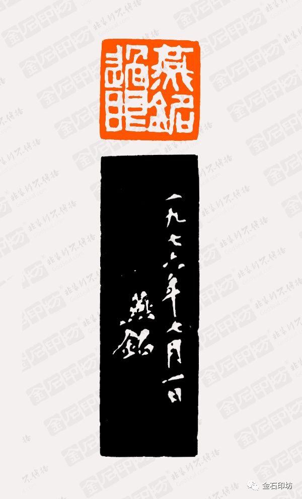 如果你认为金石君是来介绍这幅画的,那你就错了,金石君今天带来的还是印章。看完这幅画,不知道大家有没有注意到钤在左下角的那一方压角章呢?虽然这方印在这幅画上面显得很小,但是实际上它的尺寸并不小,它是一方印面足足11cm的大方章,它在画中的位置正好与太阳在一个对角线上,用来作呼应,起到了稳定整个画面的作用。