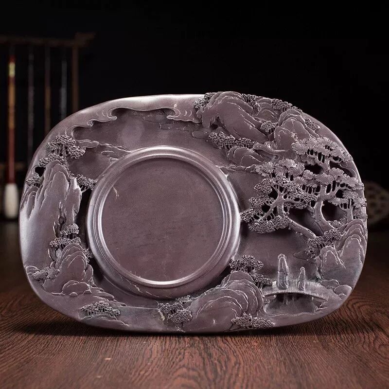砚山,是指由原石制成的砚,刻上精美花纹,既能当砚,又能做观赏石。