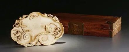 笔船,专门用于横放毛笔,以木、铜、牙、玉质材料制作。多为长方形,内设笔搁,口沿外撇。