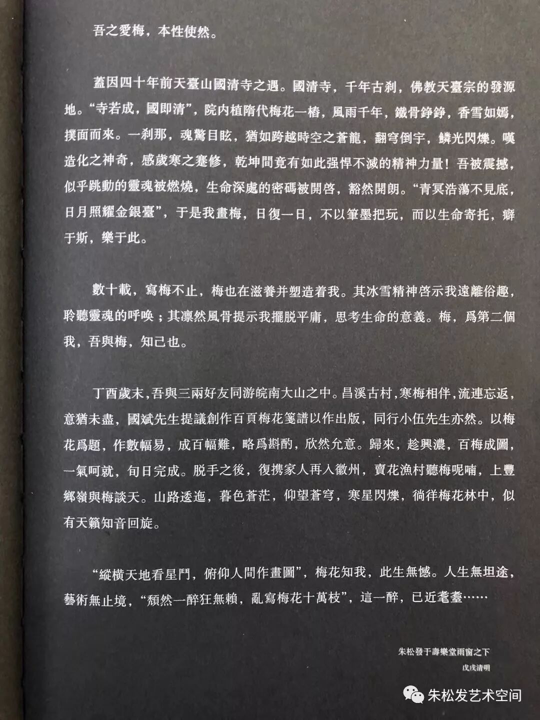 最美的书”何美之有?比如我们翻开“最美的书”---书画大家朱松发先生的梅花百图《品梅》,书之美,在于对中国传统文化的传承,其所承载的美学与文学精粹既奠基于丰富厚重的历史文化渊源,又启智于时代不断变化的需求,这便是对中华民族文化自信的集中展现。此次朱松发先生的画集《品梅--朱松发梅花百图》的书籍设计者姜嵩,出版单位为商务印书馆,雅昌印刷, 书号9787100162593,该书的亮点在于凹凸印刷的封面引入主题,凸显梅花的质感,整本书采用水墨的黑色调贯穿,简洁,给人以舒适感。整本书采用现代的表现方式演绎传递传统内容,设计风格内敛而不张扬。内文采用中西式结合的文字进行设计,丰富而具有音乐感。书中配画印制精致,还原度好。天头、切口、地脚处理微妙,工艺结构完美,开启度舒适。全书采用了三种不同纸张,黑白间隔节奏清晰,光面纸印制四色,黑色纸张上印刷银色字体,白色纸张上印刷黑色字体。排版安静,留白得当,空间展示中潜伏着律动感。