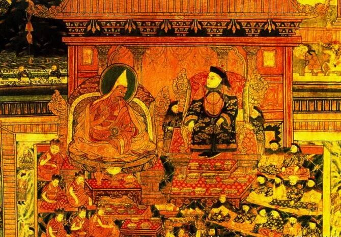 相会的双方,一个是格鲁派的领袖,另一个蒙古的大汗。