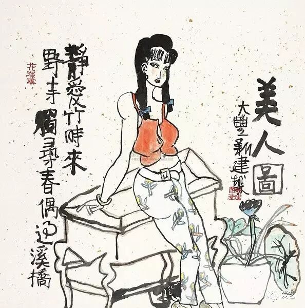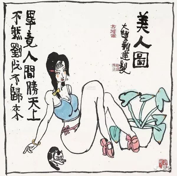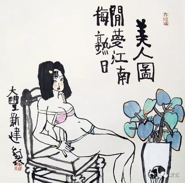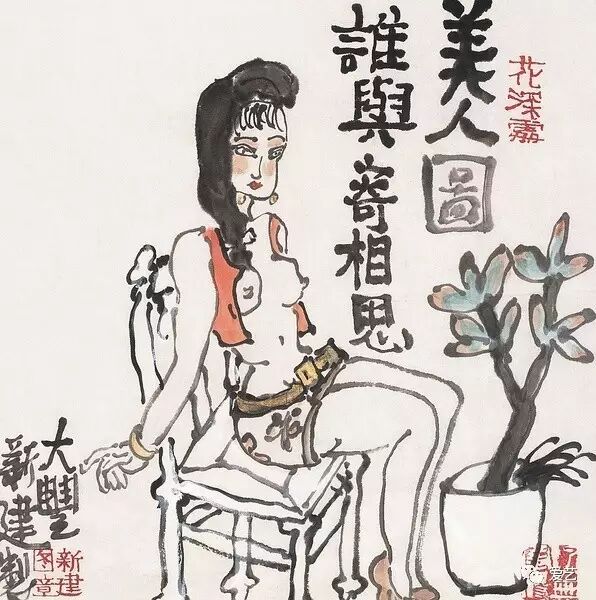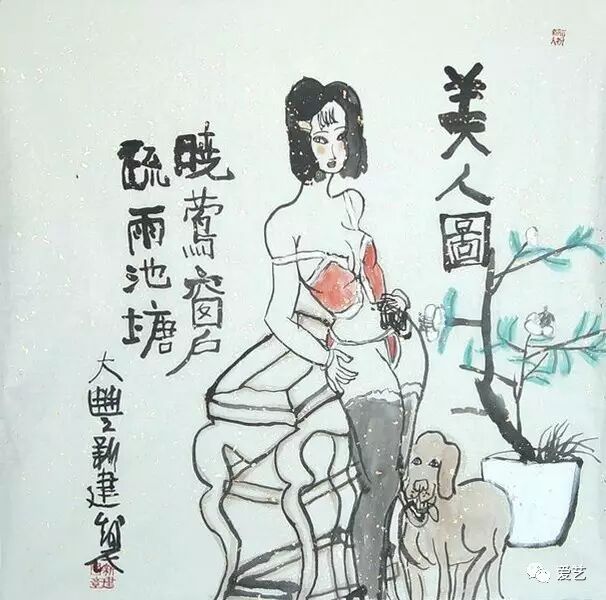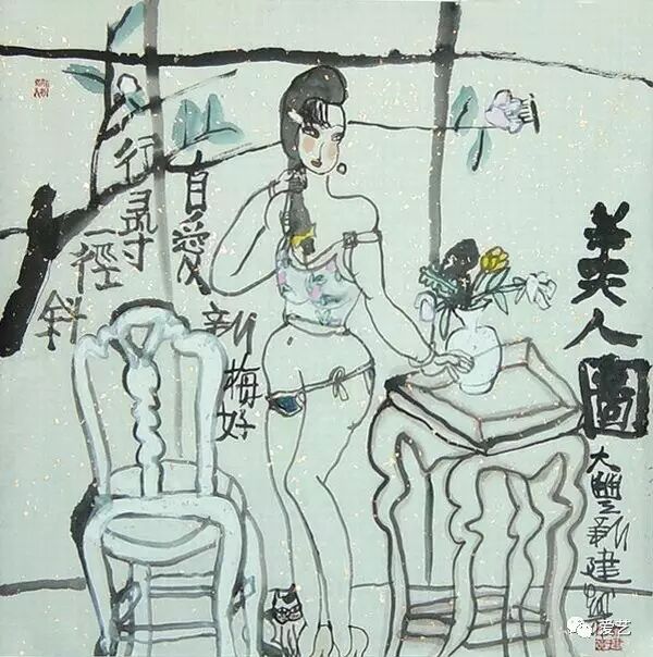 贾方舟(著名评论家):朱新建的智慧就在于他悟透了所谓“艺术”这个东西。朱新建所取的这种游戏艺术的态度也是他一贯持守的生命态度。这种真实又真诚的表白,不只来自他对艺术的认知,也来自他对生命的理解。它构成朱新建的一种基本的生命态度和价值观念,这种生命态度和价值观无疑是建立在人本主义的立场上。因此,他是一个没有被许多外在的虚荣所诱惑的很本真的艺术家。他不怕别人说三道四,活的轻松而坦荡,没有那么多的使命感和精神负担,也少了许多伪善和道貌岸然。作为一个艺术家,他保持了一份应有的敏感和真诚;作为一个人,他活得自在,活的真实,活的坦荡,他无法不快活。我们无法把朱新建的《美人图》排除在学术探讨的边界之外。而且还不得不承认,那些慵懒、闲散和顾影自怜的一个个“美人”所具有的学术价值。朱新建笔下的“美人”是彻头彻尾的男人的杰作,是一个敏感的男性艺术家借助水与墨在笔与纸的相互触摸中产生的杰作,是完全按照他作为一个男性个体的审美理想塑造出来的女性形象。