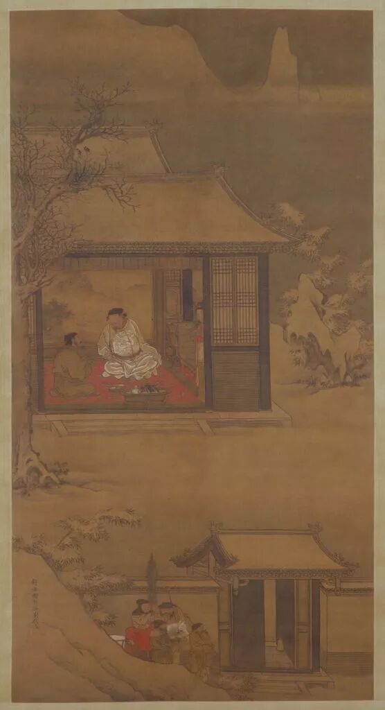 明 刘俊《雪夜访普图》轴 纵143.2厘米 横75厘米 绢本 淡设色 故宫博物院藏