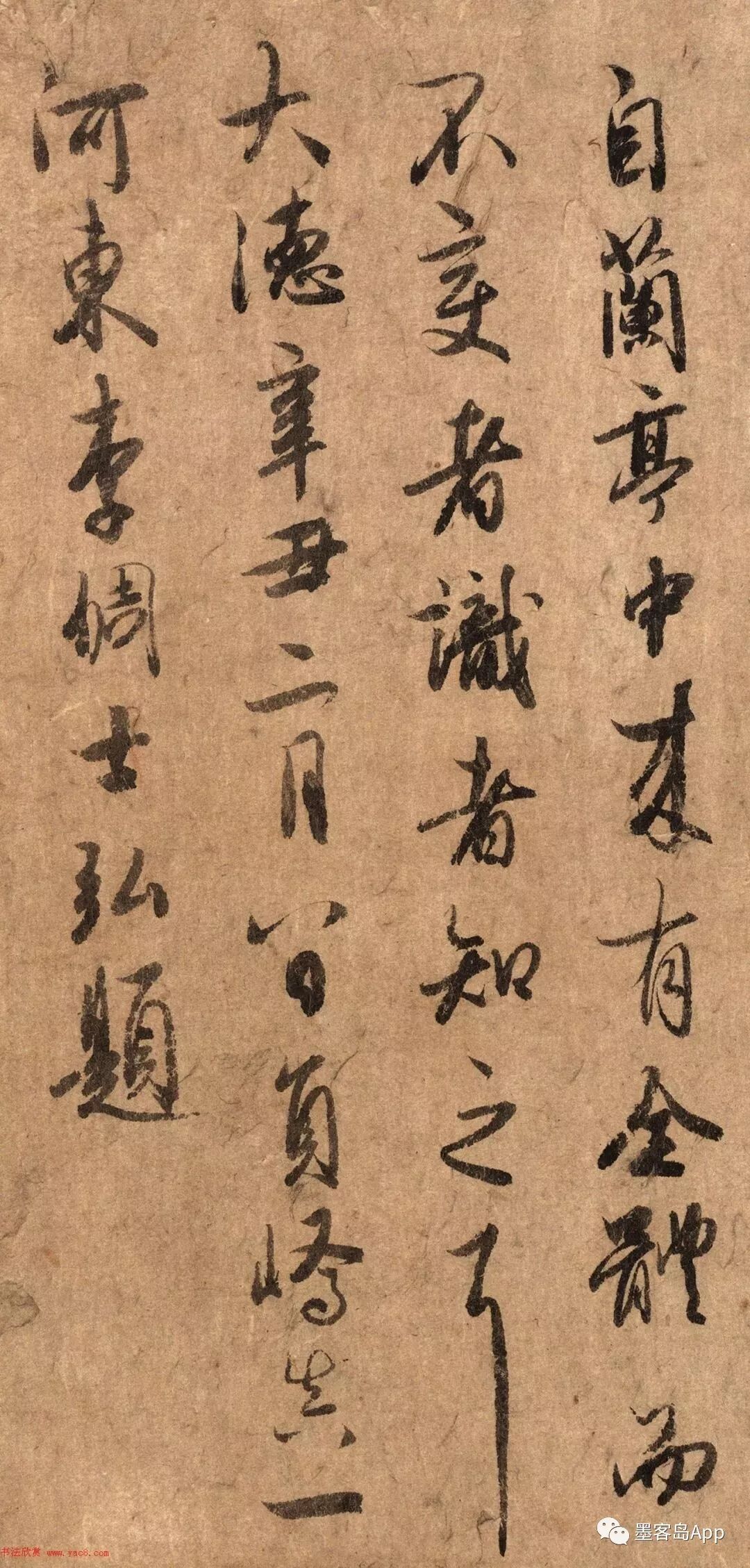 李倜其人《元史》无传,从一些零星的书画著录中,我们知道他善墨竹,富鉴藏,且“文章为当世所重”,其书法是力追晋人风致,以潇洒雅逸擅誉于世,不但书风尚晋。连书房诸景致摆设也无不是地道的晋韵雅致。两位元人的记载使我们得以一窥此公风采: