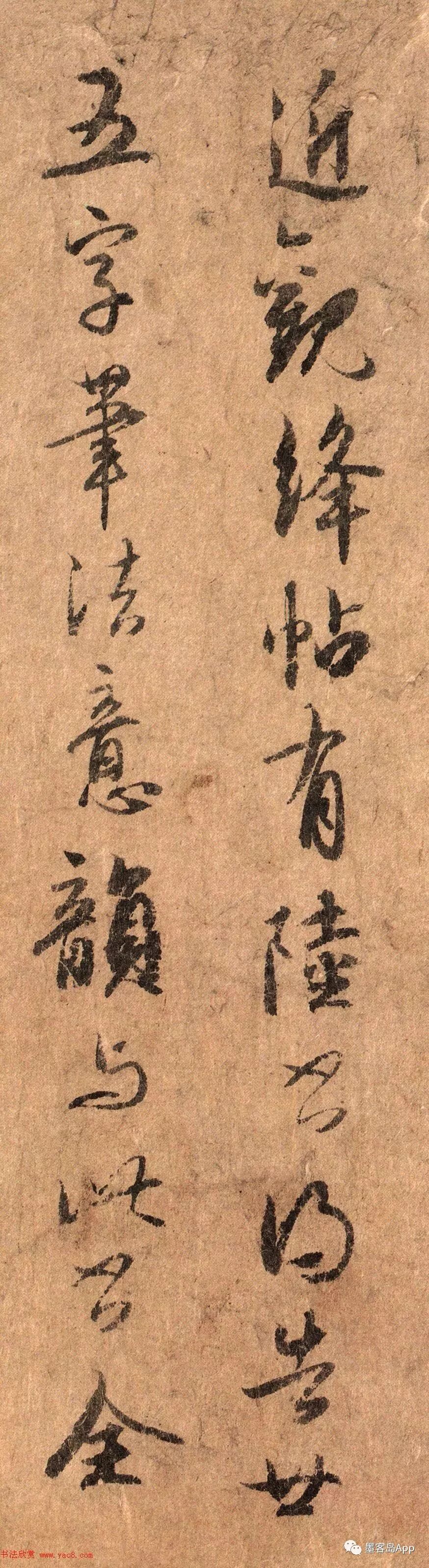 如果说赵氏是力倡元代复古迫晋的风气,则李倜是这一风气的一个突出的制高点。尽管时代相压,他也未必真能跻身晋贤以假乱真,但在正宗的技法大堤被抒情的洪流冲得土崩瓦解之后;后人对晋韵常常是持分而治之的态度:全面的把握是无能为力,则一鳞半爪条分缕析。也不失为应急良策。在此时能有李倜这样的大家出现,应该说是书法史的一个福音。它代表了后人对古法高层次理解的水平所在,忽视他至少使我们的研究会失去很多宝贵的内容。