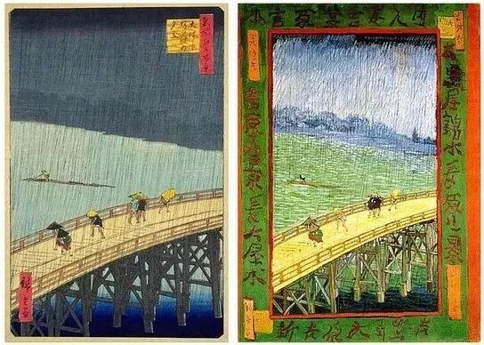 左为歌川广重《大桥骤雨》,右为梵高仿作