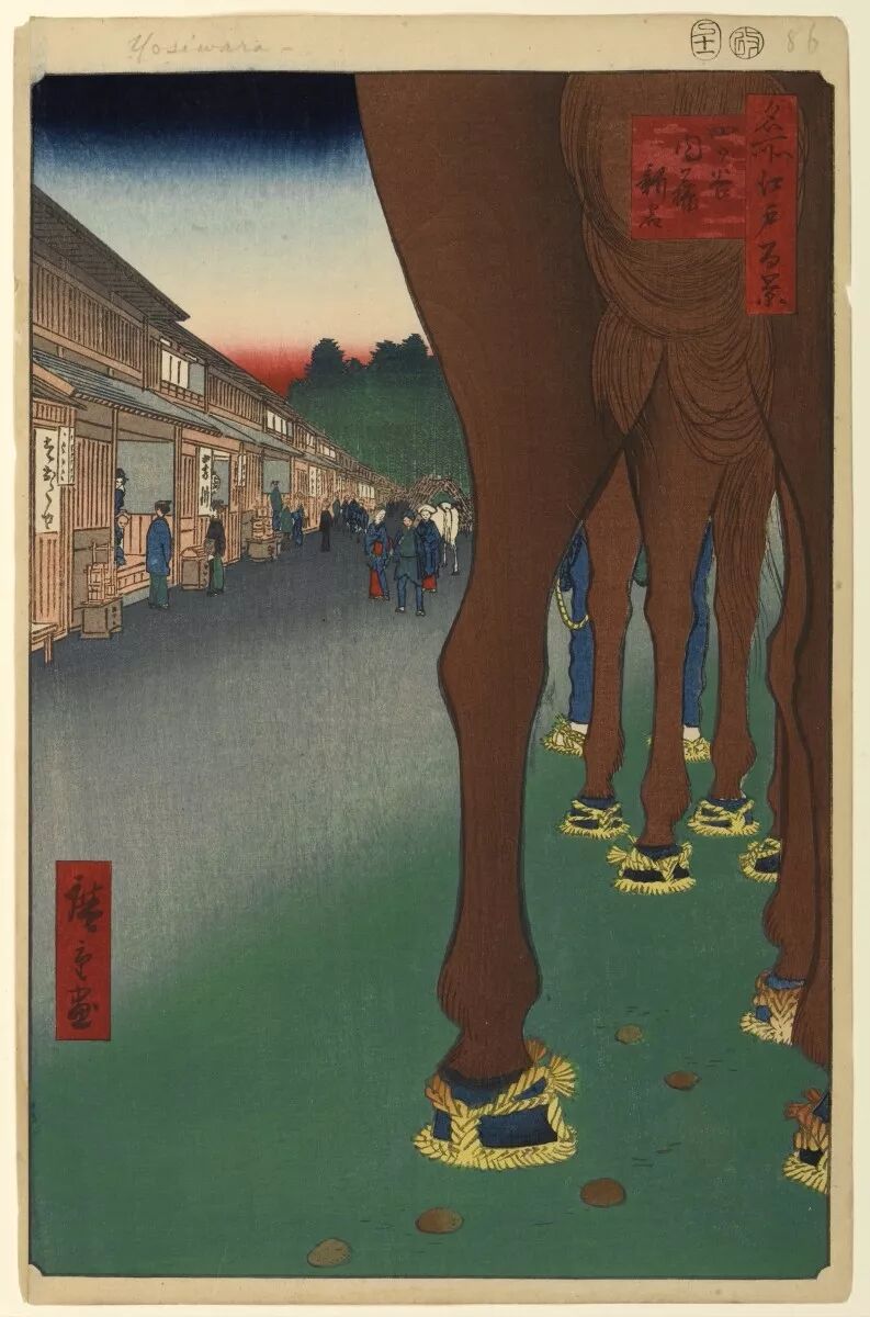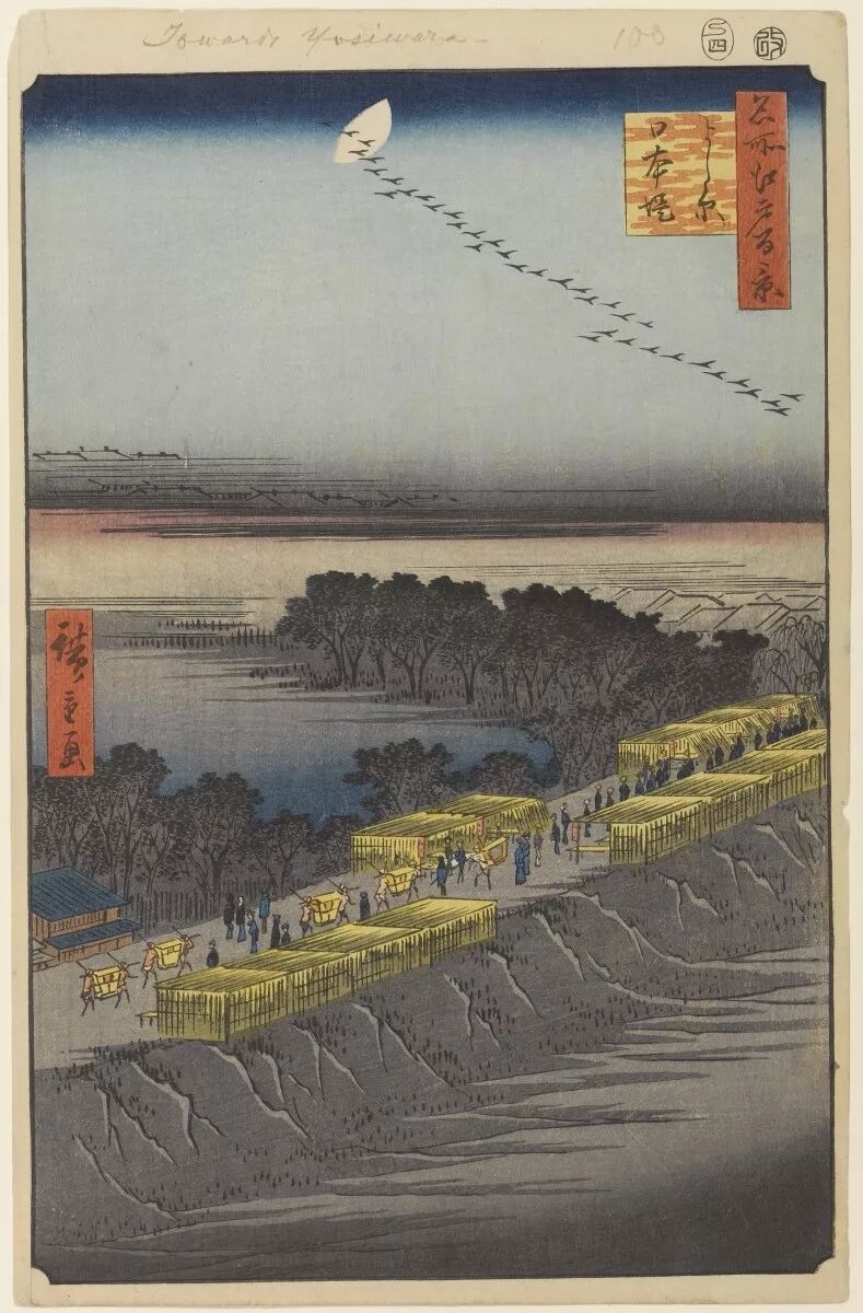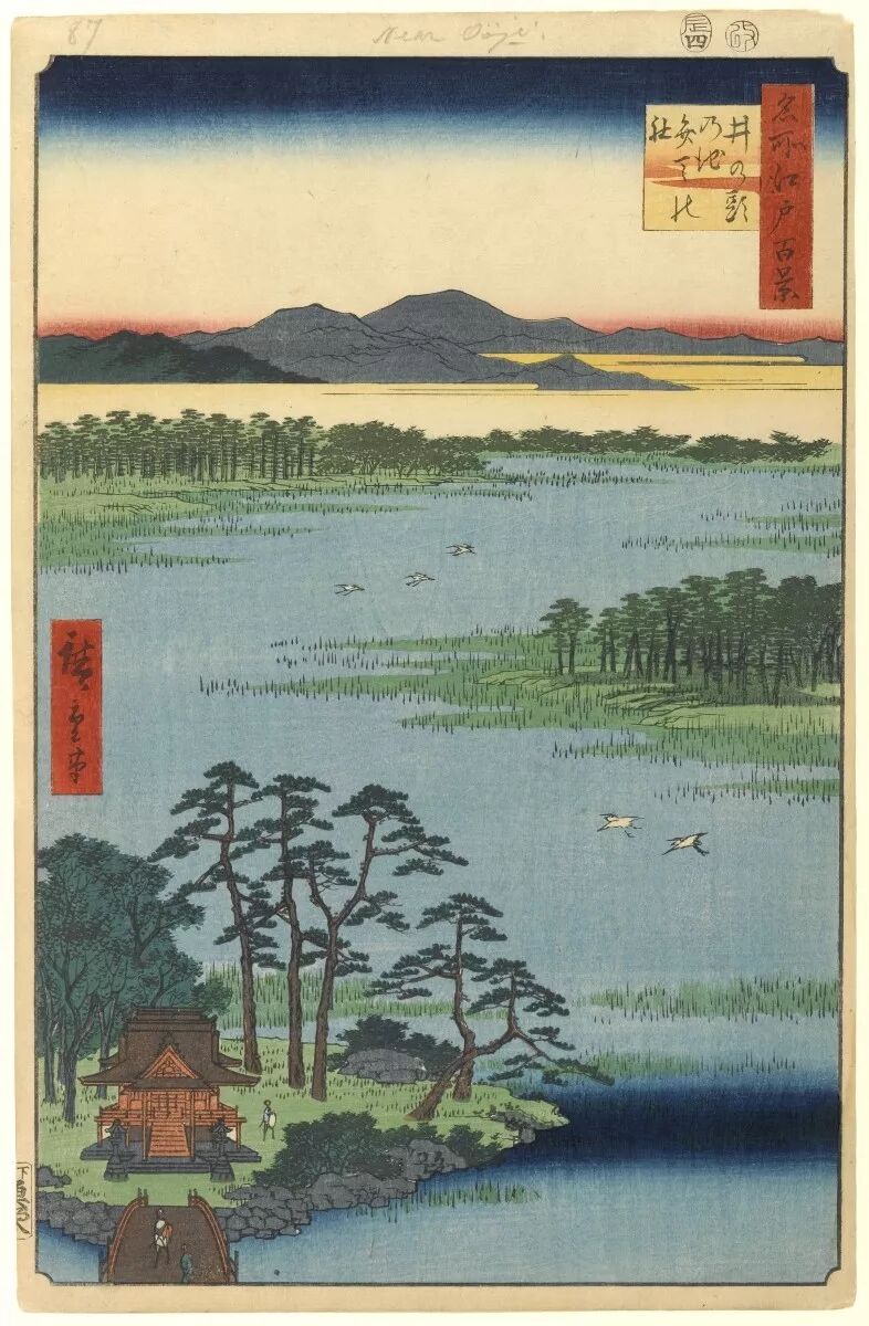 在老师歌川丰广去世后,广重转而投向风景绘,并展现出自己真正的浮世绘天分。从《东都名所》到《东海道五十三次》,再到《近江八景》,《名所江户百景》等。