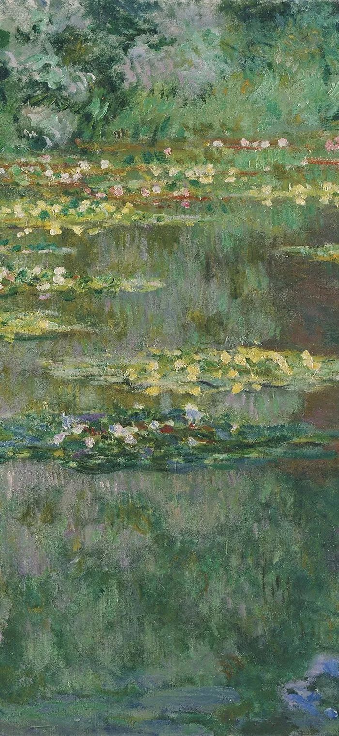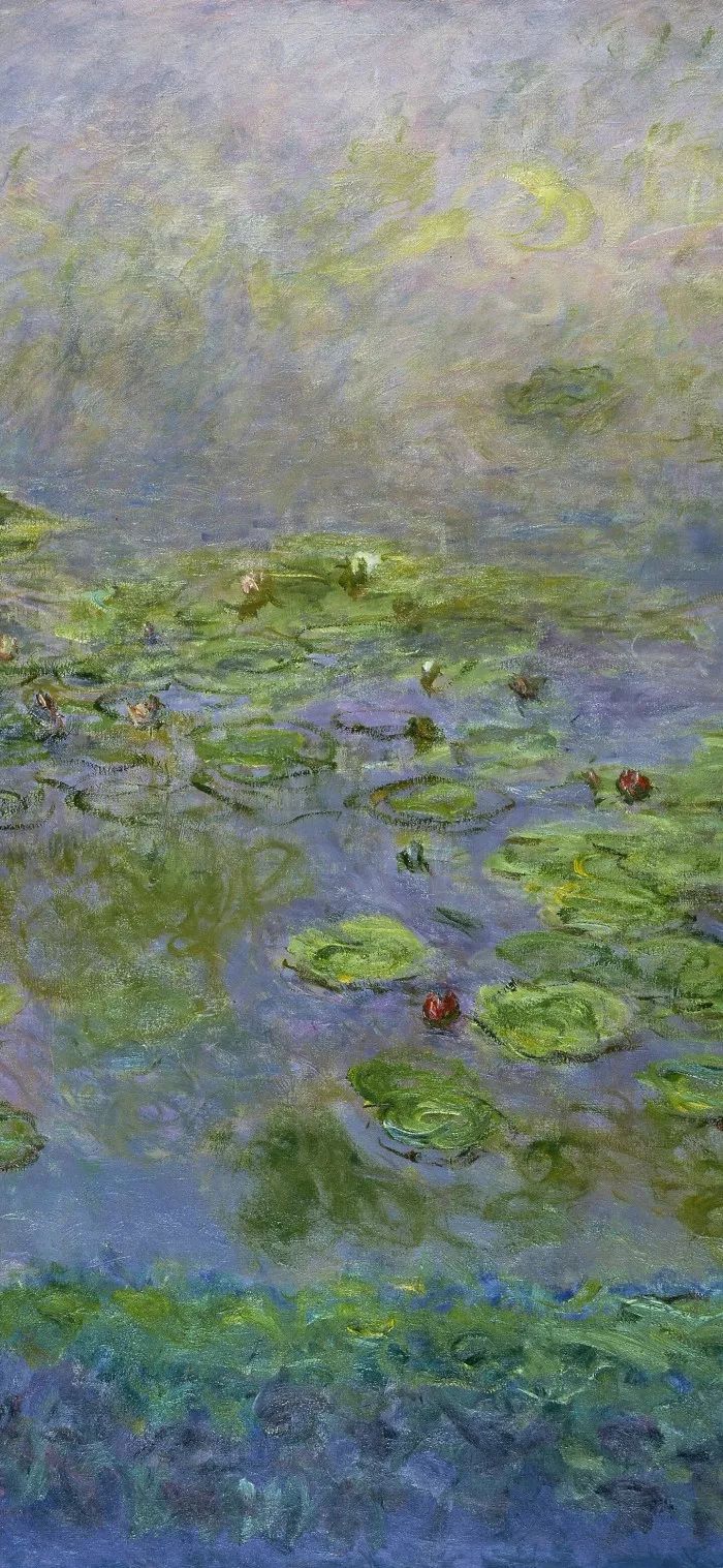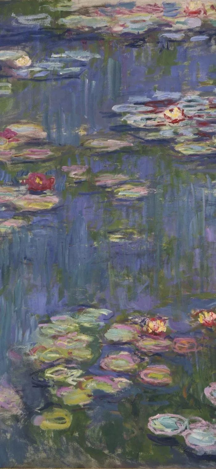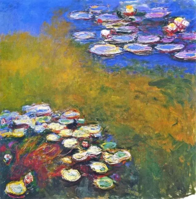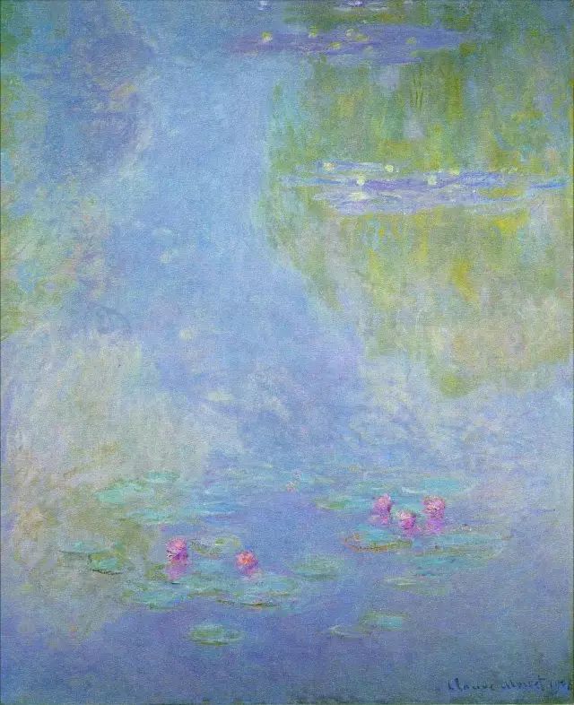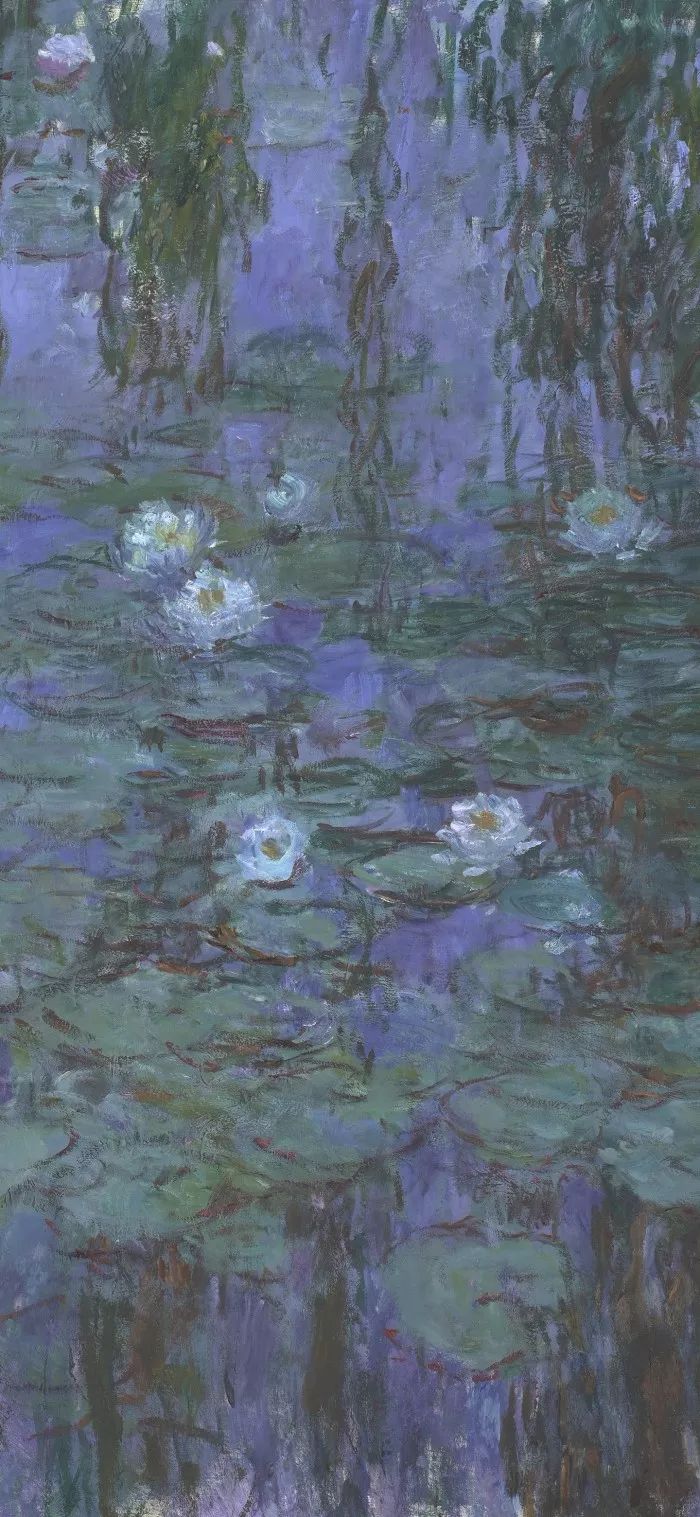 莫奈一生一共创作了 251 件《睡莲》作品,很多都属于组画,所谓“组画”,就是画家在同一位置上,面对同一物象,在不同时间、不同的光照下所作的多幅画作。区分它们的,仅仅只是大师对光与色的瞬间捕捉,这是莫奈晚年作品中的一个特色。