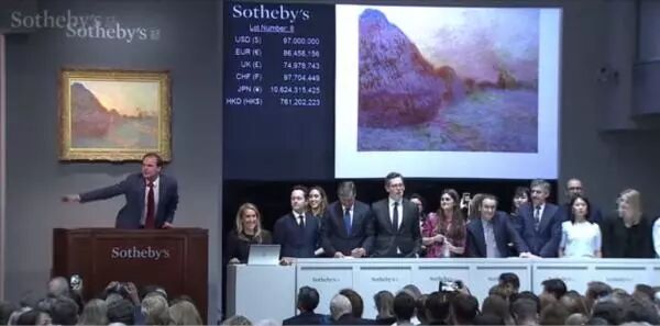 纽约当地时间今年5月14日晚8点55分,北京时间15日8点55分,纽约苏富比2019春季印象派及现代艺术晚拍结束,成交总额达到3.4亿美元。据统计,55件上拍拍品中,4件流拍,成交比率以件数计达93%。其中,克劳德·莫奈《干草堆》以1.1亿美元,约合7.6亿元人民币成为该场标王。