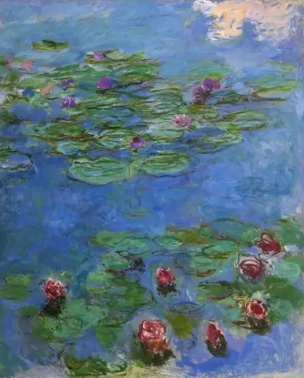 莫奈一生都爱花。“我会成为画家,也许是拜花所赐。” 从中可以读出花卉在他生活中的意义。在那些贫困的日子里,他的居所也没有缺少花的环绕。花园中的莲池亦成了莫奈艺术追求的最后寄托,他以极度的热情绘制着《睡莲》组画,《睡莲》组画印证了莫奈顽强的生命力度。在这片由浓烈的色彩构成的缤纷的世界里,睡莲成为色彩的魔幻载体,那些短暂的生命获得了永恒。