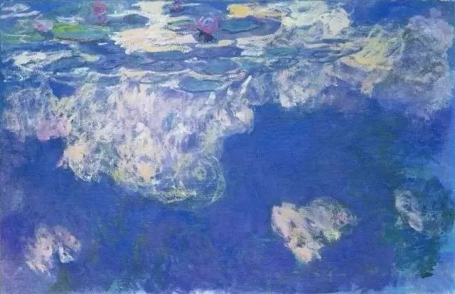 晚年的莫奈几乎足不出户,在近20 年间,他常把画架支在水边。那时的莫奈凌晨3 点起床,一连几个小时坐在睡莲池畔,与大自然心灵交融,捕捉不同季节、不同气候甚至一天的不同时刻里,花与水在光的闪烁和风的流动中,变换颤动的瞬时效果,把这种稍纵即逝的印象复述到画布上。今日世界各地所看到的莫奈晚年的《睡莲》作品其创作原型大多来源于这个水园中。