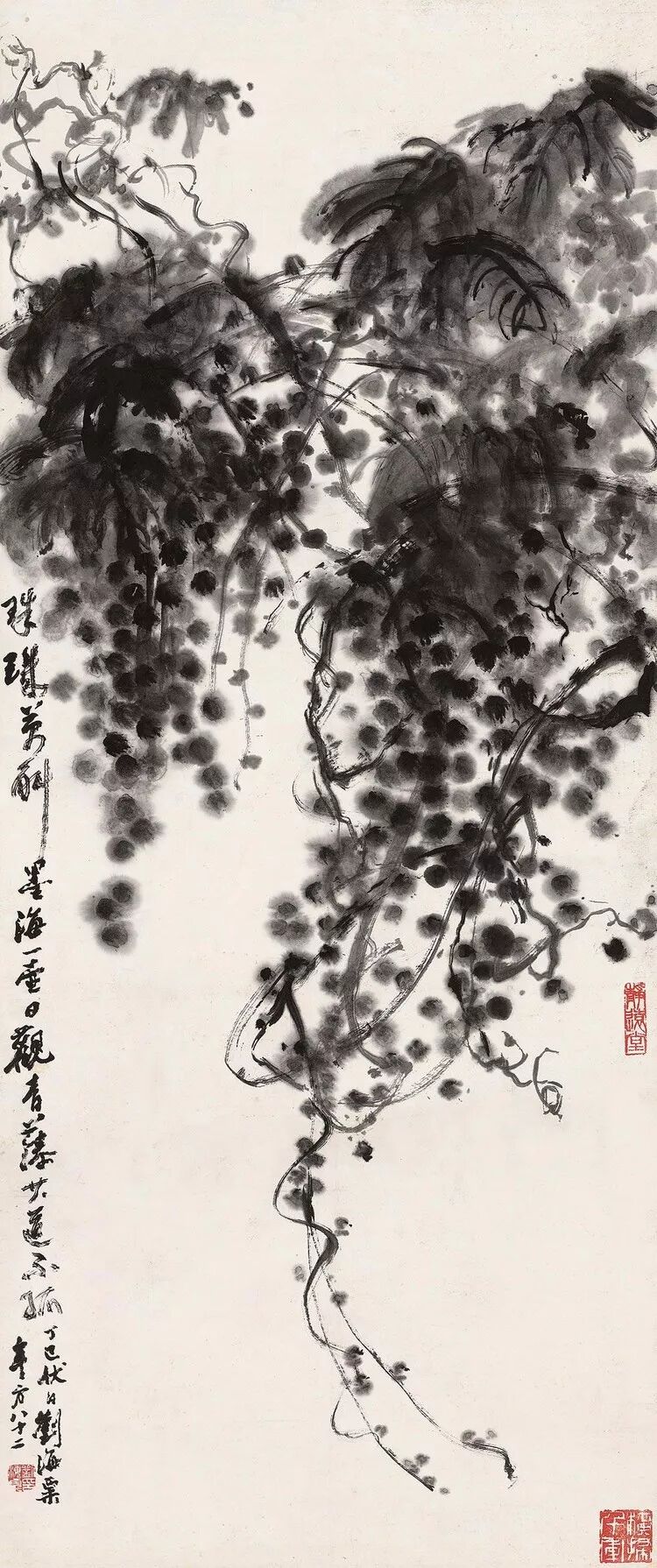 § 有人说,刘海粟的国画,笔墨功力不够,所以才画得不好。我以为这不是主要原因,也不能一概而论。就写意花卉而言,因为它层次简单,所以要以少胜多。