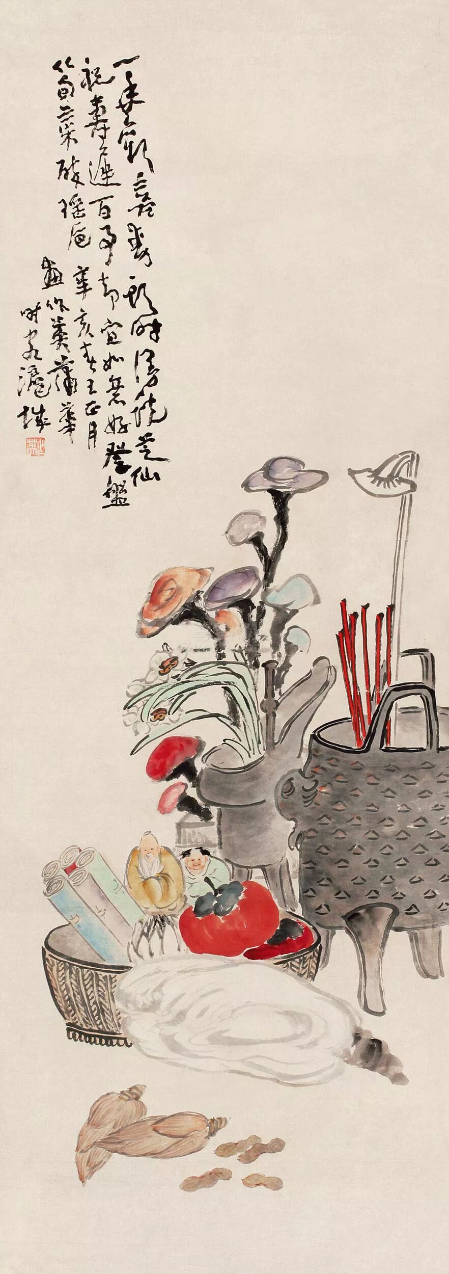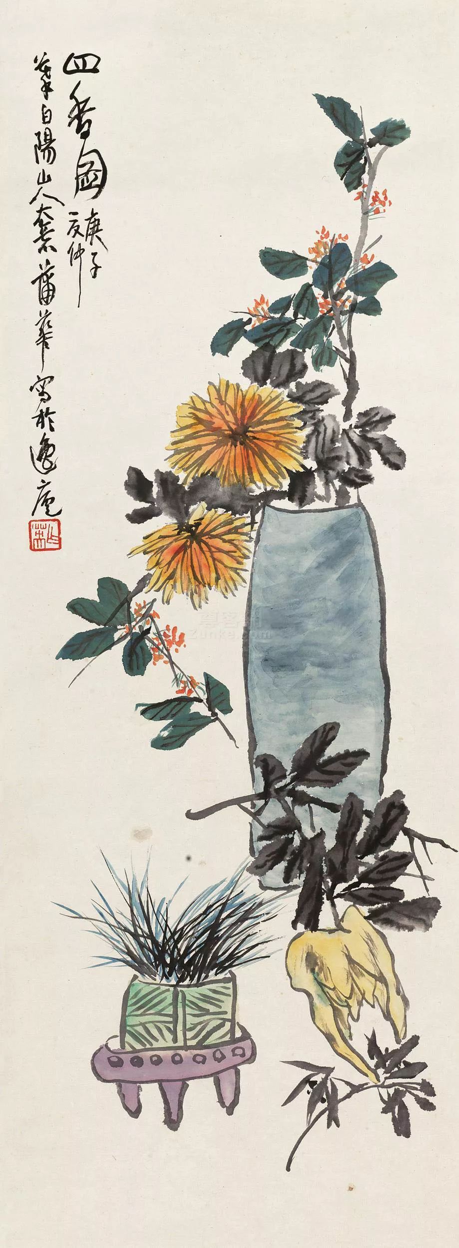 § 潘天寿画题款打破成规,根据画面,什么地方都可以写。他追求“一味霸悍”,难能可贵。