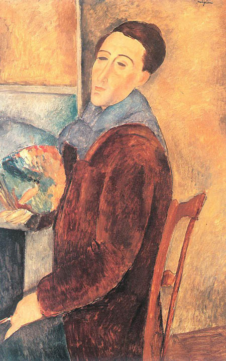 由于疯狂地创作及无休止的酗酒,到了1918年前后,此时的莫迪里阿尼虽已日渐知名,但健康情况却是江河日下。他徘徊于希望与绝望之间,也许是感受到死亡的气息,他创作了平生唯一一幅自画像。脸色苍白削瘦,手拿调色板,黑茫茫的双目永远地诉说着灵魂的永恒孤独与哀愁,这是他留给这个世界的最后姿态。