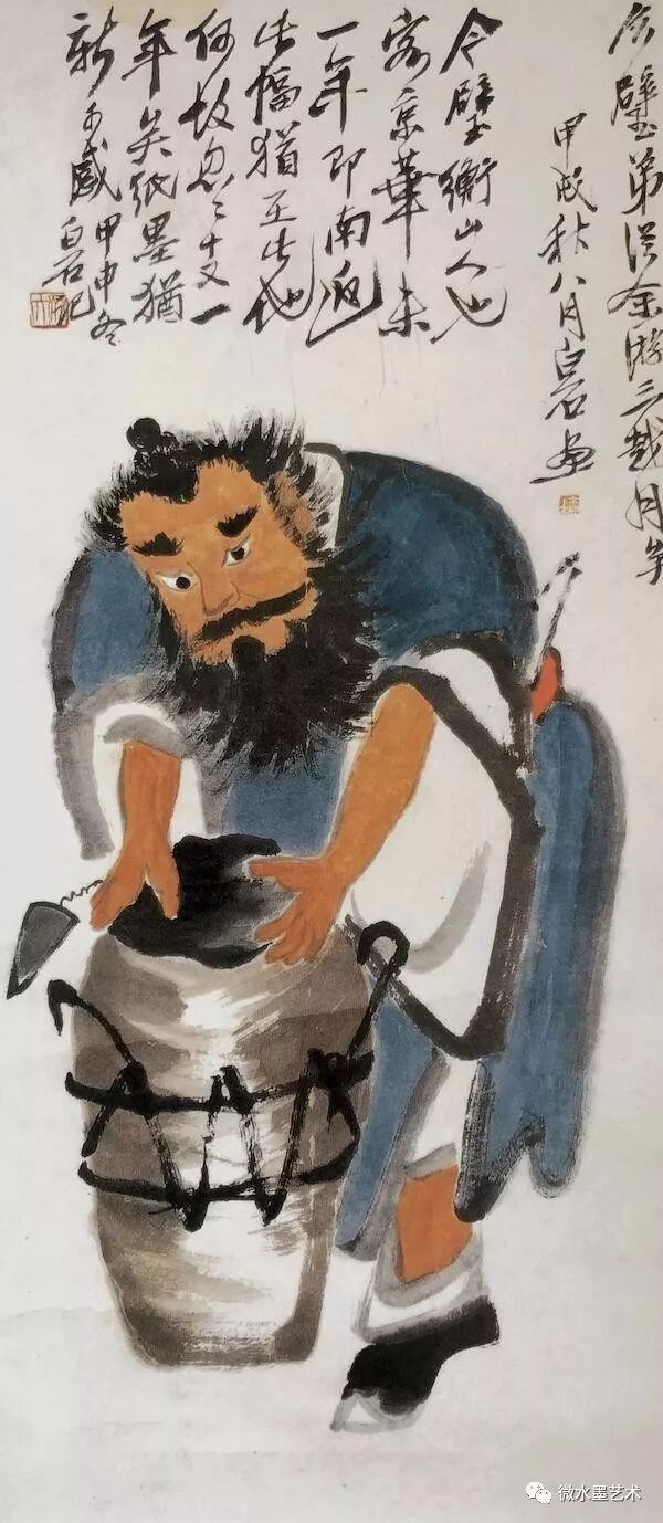 齐白石 搔背图 轴 纸本水墨设色 67.4×34.4cm 1930年