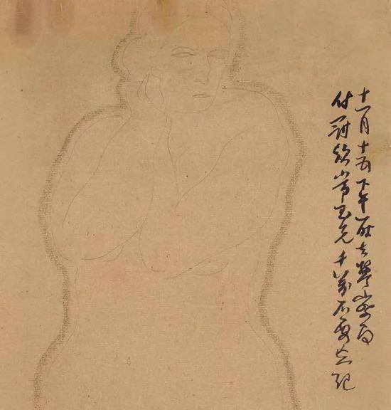 中国留法画家常玉晚年作品《曲腿裸女》,