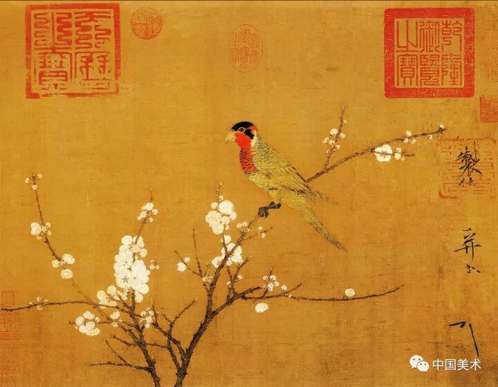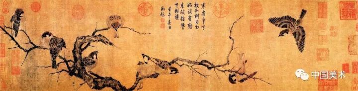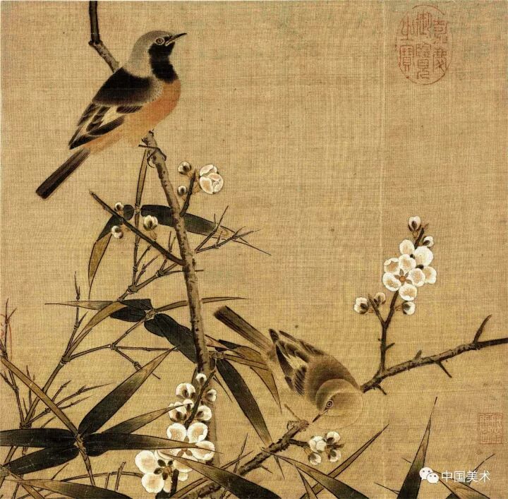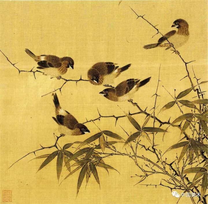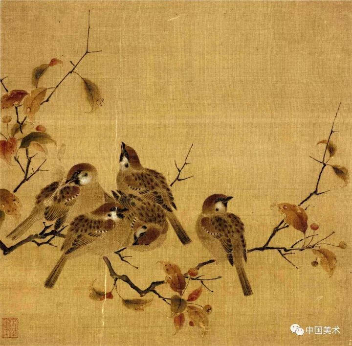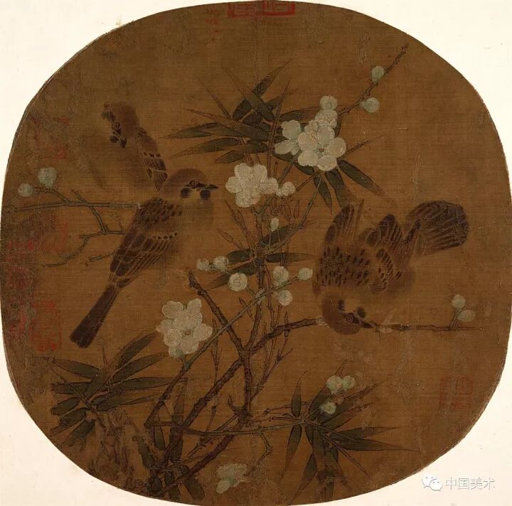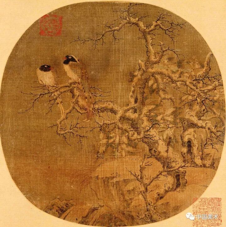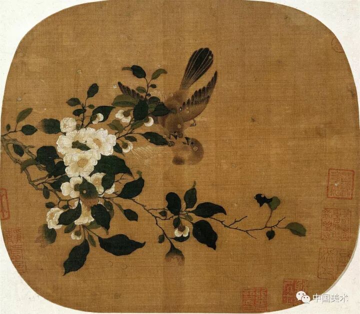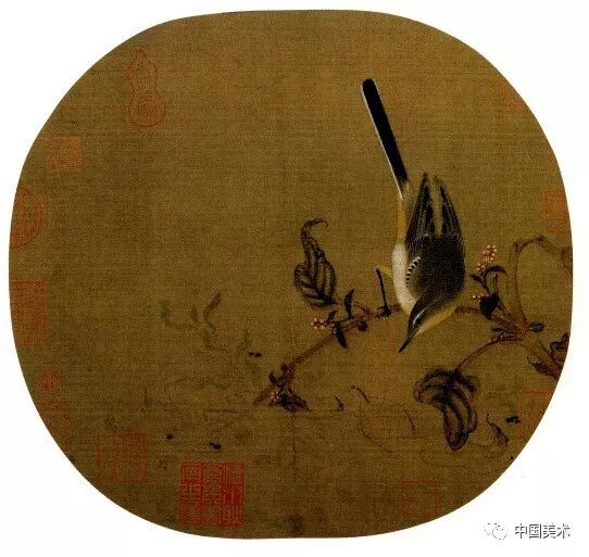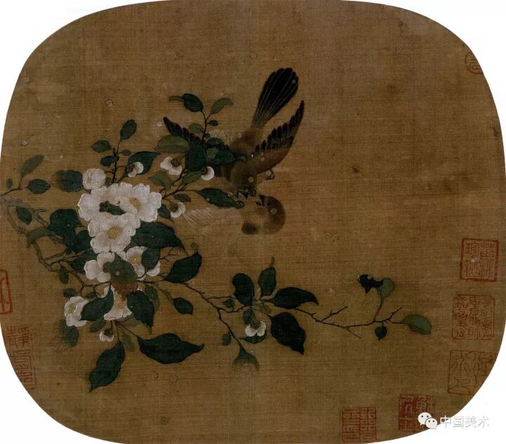 宋代花鸟在中国花鸟绘画史中达到了一个高峰,院体花鸟画下了很多传世精品,还有大量的典藏记载。其中,花鸟小品占据了主要地位,花鸟画以小品形式迅速发展,成为美术史上的一个代表艺术之一。宋人小品花鸟画形制多为圆中见方的尺牍小幅,以内敛的结构和开合呼应的构图方式,描绘特定的场境和瞬间情态,于状物精微的同时力求构思新奇,营造格调优雅而隽永的意境,表现出独特的趣味。