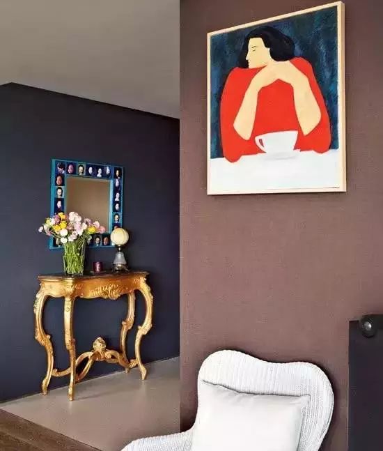 与冷蓝色的墙色相衬,
