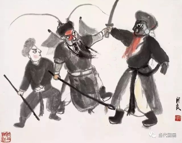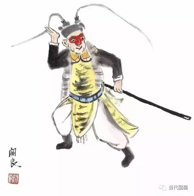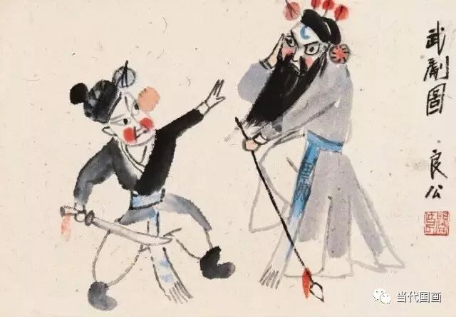 关良的戏曲人物画,看似稚和拙,但稚中却藏老辣,拙中透着天趣,他是稚中见苍,拙中见巧,见大智,见大勇。他笔下的人物,在脱净了市井油滑的同时,赋予了清爽素朴和深沉健朴,他是借中国戏曲人物之躯,来表现中国笔墨的博大精深和中国笔墨的无穷趣味。