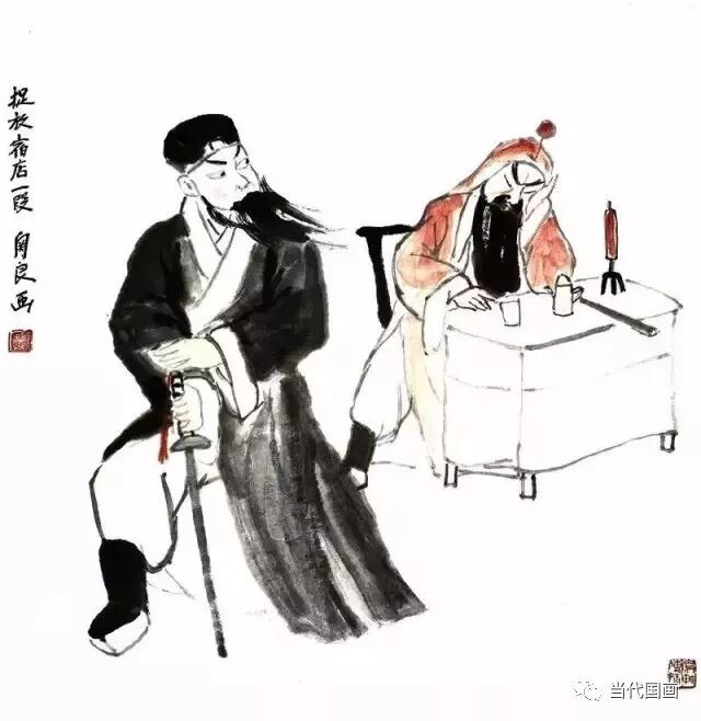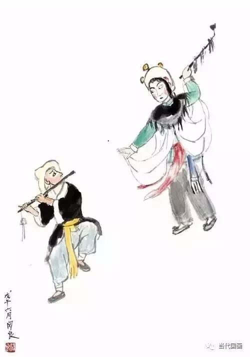 看关先生的画仿佛觉得画中的人物就在戏园子里唱念做打,近在眼前。虽没有写实的布景,华丽的戏服,但你就是能感觉到画中人眼神里的风情万种,身段中的回味无穷。