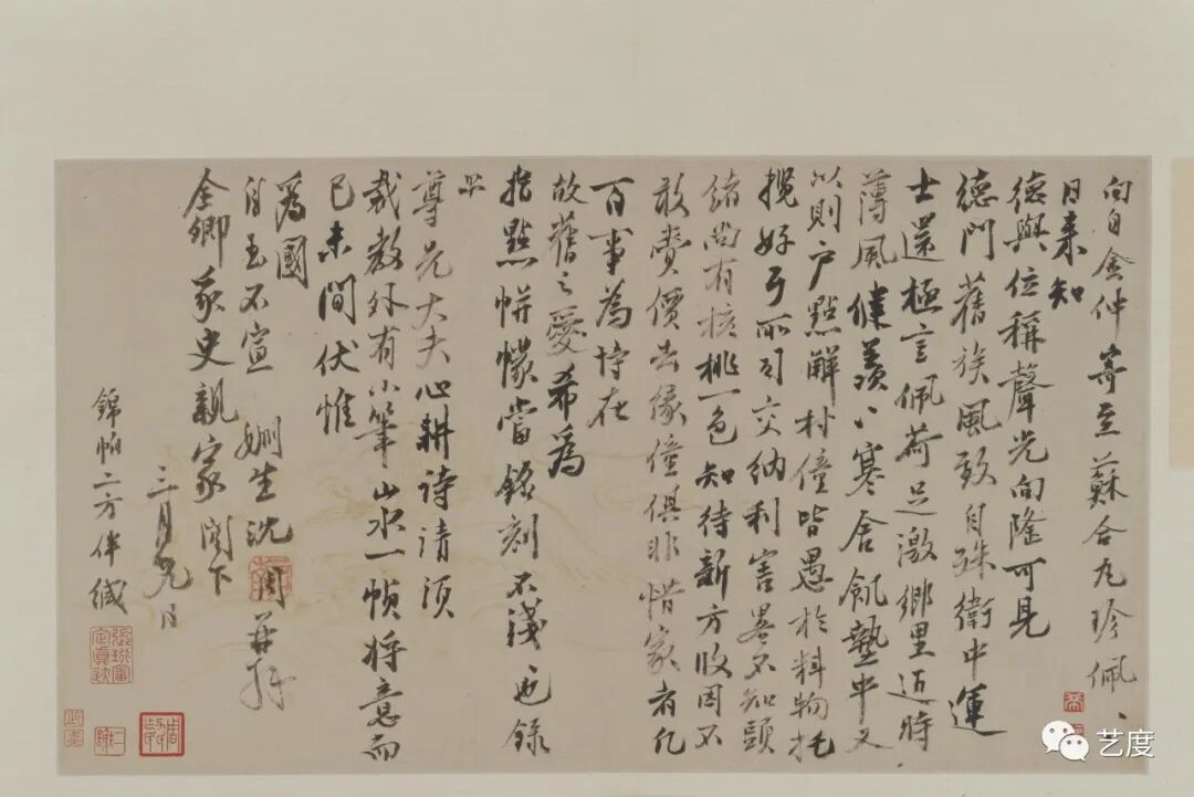 张葱玉的尺牍收藏很有名,下面这件北宋富弼《儿子帖》,便是当年张葱玉转给谭敬的。帖上还有“张珩私印”“谭敬私印”的印记。