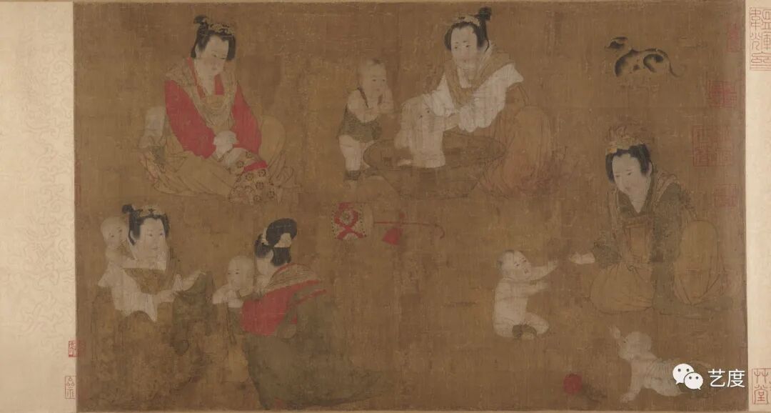 张葱玉好赌,投资银行又失败,为了还债,一些藏品经卢芹斋出手欧美。卢芹斋就是从他们张家的仆人做起开始发迹的。下面这件宋人《仿周昉戏婴图》由卢芹斋卖给大都会艺术博物馆。