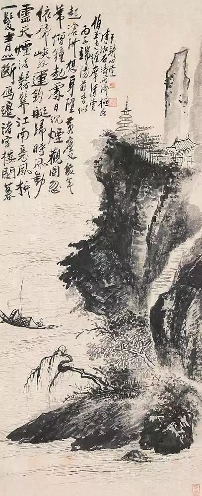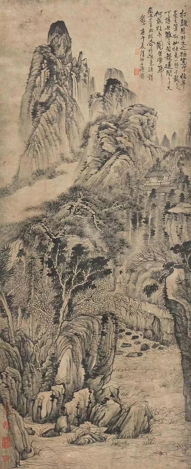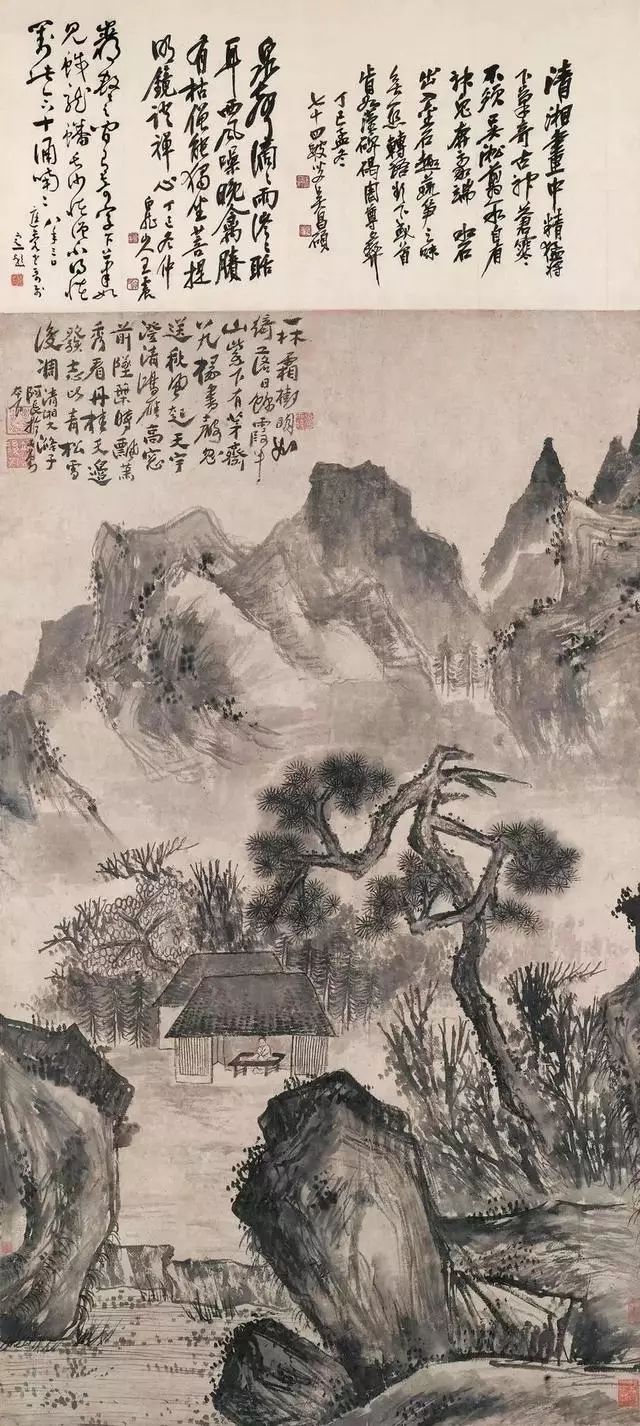 檫点明暗处,用笔要细稳。檫点一山成,远近常关心。山涧紧相连,浓淡要辩清。画半要细看,似乎可以成。若是不合意,寻找顺势形。该改侧大胆,不改须细心。画前须静想,画时耐心稳。多在墙面画,才好看得正。