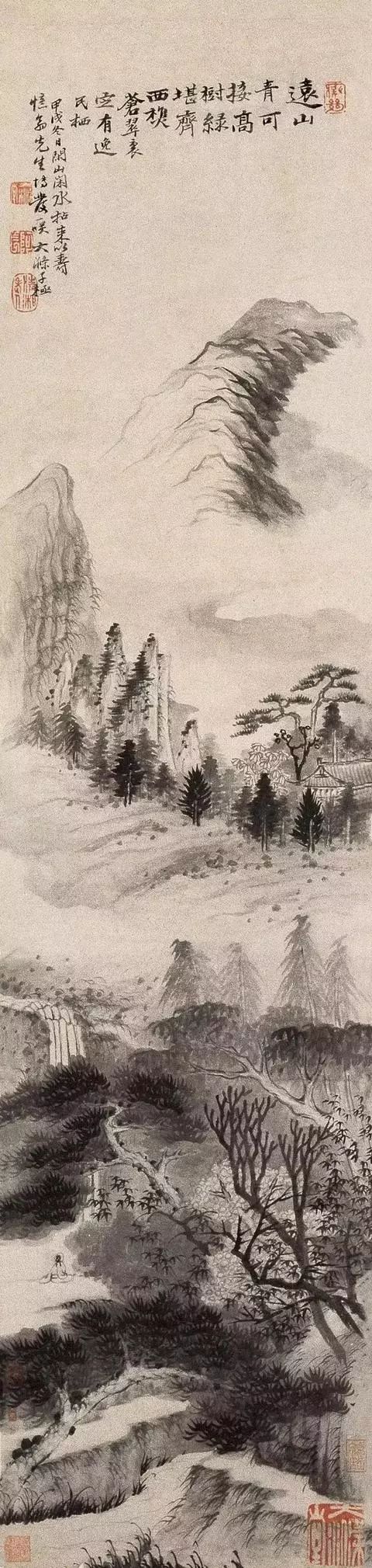 山脚可点树, 但要雾和云。山脚不作树, 需要染纯清。远山写云海,墨色相染成。近山有雾气,只在山脚形。高低多层次,写云几次成。浓墨下脚处,浓淡要细明。