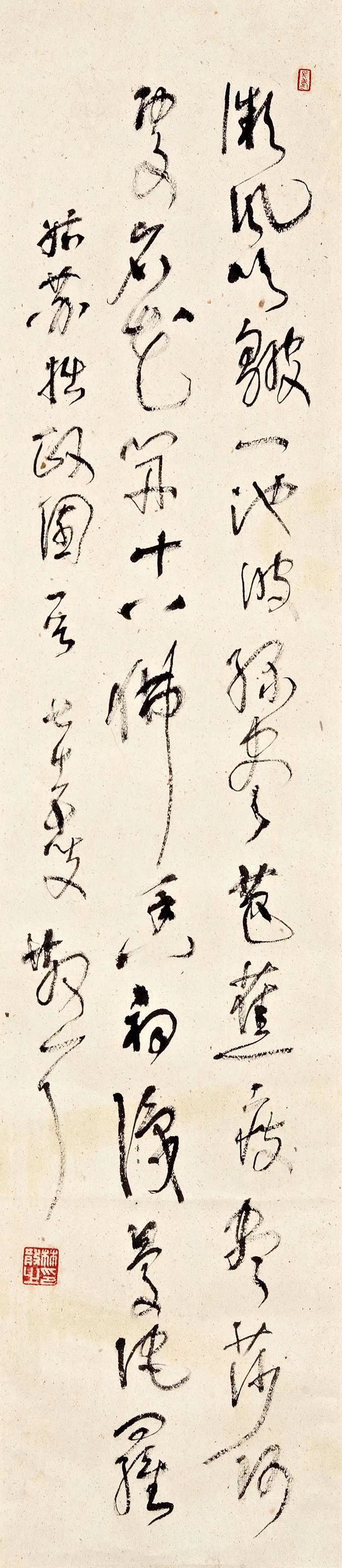 ◆力量凝蓄于温润之中,比如京剧净角,扯起嗓子拼命喊,声嘶力竭,无美可言,谁还爱听?◆不善用笔而墨韵横流者,古无此例。《林散之序跋文集》◆写大字要用臂力,不能光用腕力。用臂力才能力透纸背,这是真力。◆写字时手不能抬得太高,也不能拖在下面,要上到下一样平,这叫平肘。还要虚腕,虚腕才能使手中的笔自由转动,随心所欲。◆写字要有墨法。浓墨、淡墨、枯墨都要有,字“枯”不是墨浓墨少的问题。◆怀素能于无墨中求笔,在枯墨中写出润来,筋骨血肉就在其中了。◆王铎用干笔蘸重墨写,一笔写十一个字,别人这样就没有办法写了,所谓入木三分就是指此。◆把墨放上去,极浓与极干的放在一起就好看,没得墨,里面起丝丝,枯笔感到润。墨深了,反而枯。枯不是墨浓墨淡。(与陈慎之谈)◆笪重光论用墨:磨墨欲浓,破水写之方润;厚纸用墨要带水,薄纸、皮纸要用焦墨写。用墨要能深透,用力深厚,拙中巧。