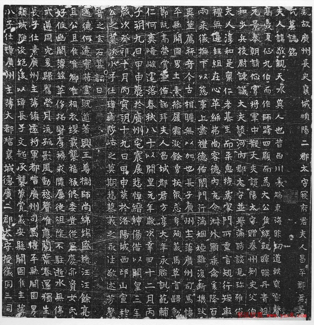 隋代寇仕璋撰并正书《姜敬亲墓志》或称《寇炽妻姜敬亲墓志》,1925年在洛阳城东北拦驾沟村北出土。姜敬亲于隋开皇元年(公元581年)十二月卒于其长子广州主簿寇仕素家中,开皇三年(公元583年)十月十九日葬于“洛阳城西邙山宣穆公之墓次”。志高57厘米;广56.5厘米。24行,行24字,现藏于陕西西安碑林。