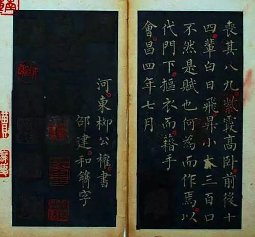 李郃(807—873),字子玄,号西贞,湖南永州宁远下灌村人,828年状元。837年,李郃从广西贺州荣调大唐都城长安,任吏部侍郎,与柳公权成为同事,相互交好。又拜柳公权为师,学习柳体书法。为宣传和弘扬家乡九疑的虞舜文化,李郃特撰《九疑山赋》,向师长柳公权求字。844年,柳公权67岁,其书法造旨达到巅峰时期,挥笔写成精品书法作品《九疑山赋》。后由柳公权最美鎸刻合作伙伴邵建和将其刻于珍贵硬木之上。李郃退休时,带回家乡下灌珍藏。