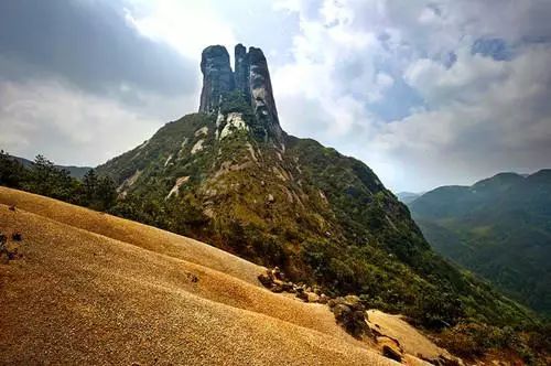 九嶷山,又名苍梧山。位于湖南省南部永州市宁远县境内,宁远县城南60里,属南岭山脉之萌渚岭,纵横2000余里,南接罗浮山,北连衡岳。这里峰峦叠峙,深邃幽奇,千米以上高峰有90多处,多为砂页岩、花岗岩、变质岩组成。素以独特的风光,奇异的溶洞,古老的文物,动人的传说,驰名中外,令人神往。《史记·五帝本纪》: "舜南巡崩于苍梧之野,葬于江南九嶷。"《水经注》云:"苍梧之野,峰秀数郡之间,罗岩九峰,各导一溪、岫壑负阻,异岭同势。游者疑焉,故曰:九嶷山。"