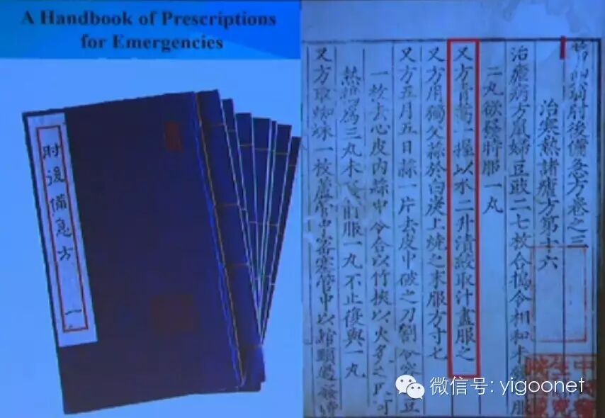 当年我面临研究困境时,又重新温习中医古籍,进一步思考东晋(公元3-4世纪)葛洪《肘后备急方》有关“青蒿一握,以水二升渍,绞取汁,尽服之”的截疟记载。这使我联想到提取过程可能需要避免高温,由此改用低沸点溶剂的提取方法。