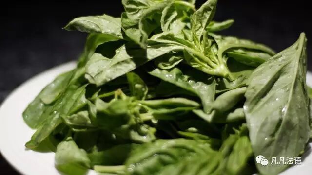 要做一盘美味的青酱“菲塔契尼”,首先要70克左右的新鲜罗勒叶子,叫Basil。千万不要和另一种叫Thai Basil的九层塔搞混了。九层塔也叫金不换,是越南粉和三杯鸡中不可缺少的配料。除了香气不同,区别这两种Basil最简单的办法就是,梗的颜色不同,九层塔是红梗,而罗勒是绿梗。