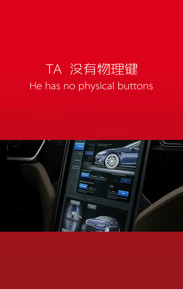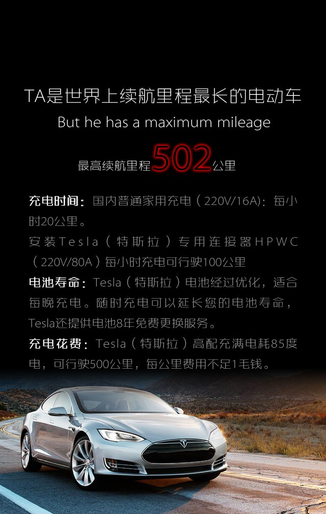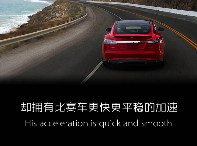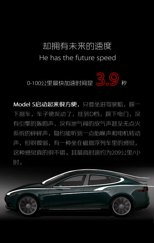就像iPhone刚刚出现时,许多人还没有意识到他们的生活将会因为创新科技而迅速的发生翻天覆地的变化,来自美国的纯电动跑车TESLA Model S,像他行驶中产生的噪音那样悄无声息,驶入了这个星球的无数个大街小巷。?