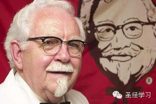 桑德斯事业有成后,不仅热心公益,也稳定聚会、固定什一奉献,更帮助无数教会,但心中却一直有种空虚和不平安感。直到某次在家乡教会参加崇拜时,他向牧师表达自己的需要,并在牧师引导下,屈膝作了悔改认罪的祷告,第一次感受到耶稣的同在,那年他75岁。
