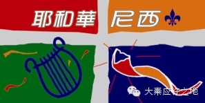 将旗以鲜明的色彩分隔为四块,形似盾牌,象征耶和华是我的盾牌,又表明祂使我夸胜。其上有琴与号,表明争战的得胜,不再乎用刀用枪,争战的胜败全在乎耶和华,在于吹号召聚百姓,赞美、宣告耶和华的得胜!