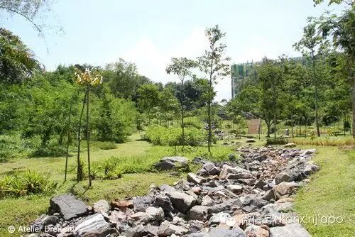 基于整体的设计方式,5公顷的裕廊生态园中央核心区规划充分尊重大自然,不仅保留、而且在它所有不同的功能和层面上理解从而尊重自然和场地内独特的自然特征。通过一系列包括地形、地质、水文、植物以及动物方面的调查和研究,场地的原始状态被清晰解读。这些层面信息的集成显示了在山谷地势较低的沼泽之地开发淡水湿地森林的潜力。从历史上看,裕廊镇曾拥有更大面积的此类型的生态栖息地。多年来,尽管它们当中的许多已经被移除,且并不确定清洁科技园区场地构成其中之一,不过一些淡水沼泽树种已被确定在场地之内存在,并被证明适合在该场地内生长。