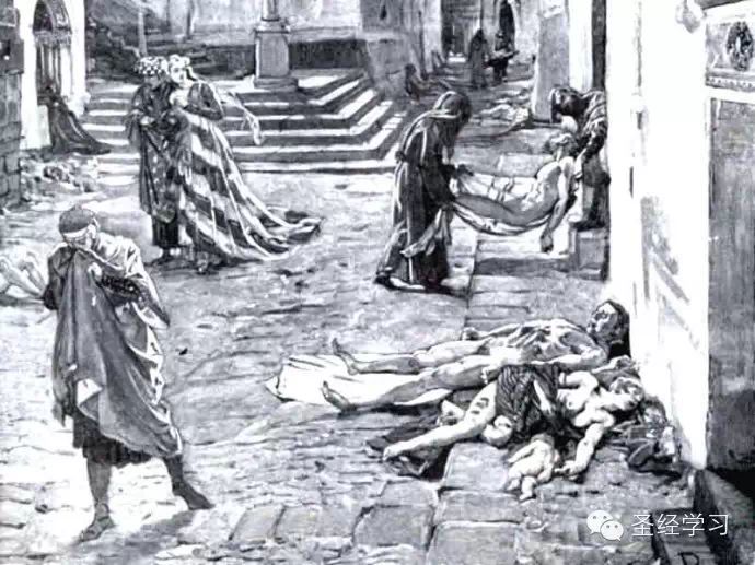 约翰本人目睹了瘟疫如何以其摧毁城市的同样殘暴摧毁了乡村。“一天又一天,我们也像所有的人一样,叩击着坟墓的大门。如果夜晚来临,我们就会想,死亡定会在夜间来攫取我们的性命;若黎明降临,我们又会整日面对坟墓之门。”
