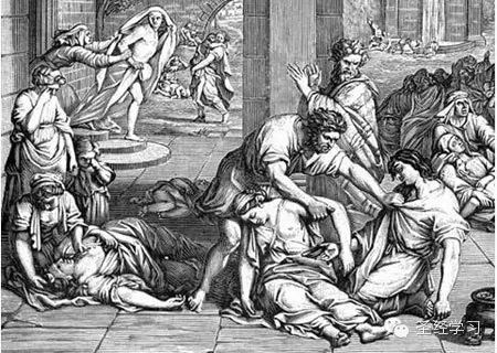 “有 时,当人们正在互相看着对方进行交谈的时候,他们就开始摇晃,然后倒在街上或者家中。当一个人手里拿着工具,坐在那儿做他的手工艺品的时候,他也可能会倒 向一边,灵魂出窍。人们去市场买一些必需品,当他站在那儿谈话或者数零钱的时候,死亡突然袭击了这边的买者和那边的卖者,商品和货款尚在中间,却没有买者 或卖者去捡拾起来。