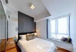 这一间的卧室在客厅的楼下。我们先来看带有绝美飘窗的主卧。想象一下每天早上醒来望向窗外,是不是有指点江山的感觉?