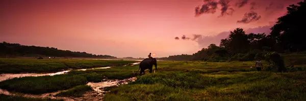 骑大象到处都有,但资深旅行家一定不会错过在尼泊尔骑大象!你不会只是乖乖呆在象背上穿过丛林,而是穿过雾气迷茫的真正热带丛林,越过沟坎,淌过溪流,去追逐犀牛群,找野猪、山鸡、猴子、麋鹿……看它们扬起尘土,把丛林震得嗡嗡响……你不是骑大象,而是成了大象的一部分!