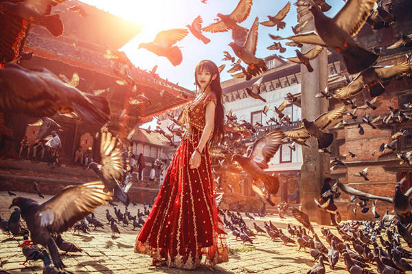 穿上当地艳丽的民族服装,和夕阳、鸽子来张合影,一定是你尼泊尔之行中诸多场景中,最经典的一张。